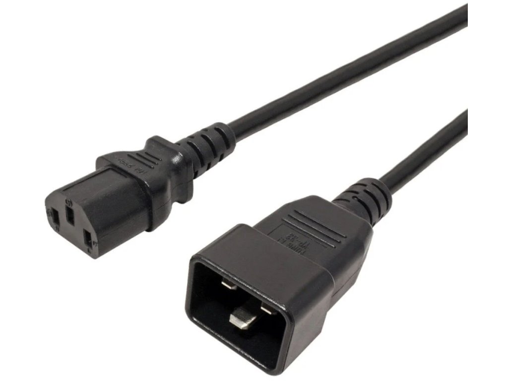 Pro propojení zařízení s konektorem IEC320 C14 (lichoběžník se svislými kontakty) k UPS nebo napájecímu panelu se zásuvkami IEC320 C19 (obdélník s vodorovnými kontakty).