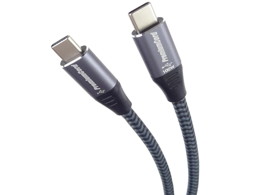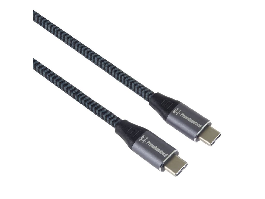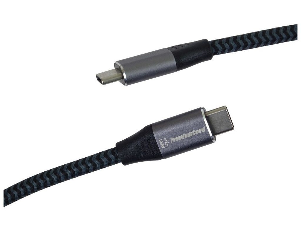 PremiumCord Kabel USB-C M/M, 100W 20V/5A 480Mbps bavlněný oplet, 2m