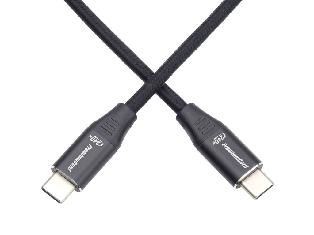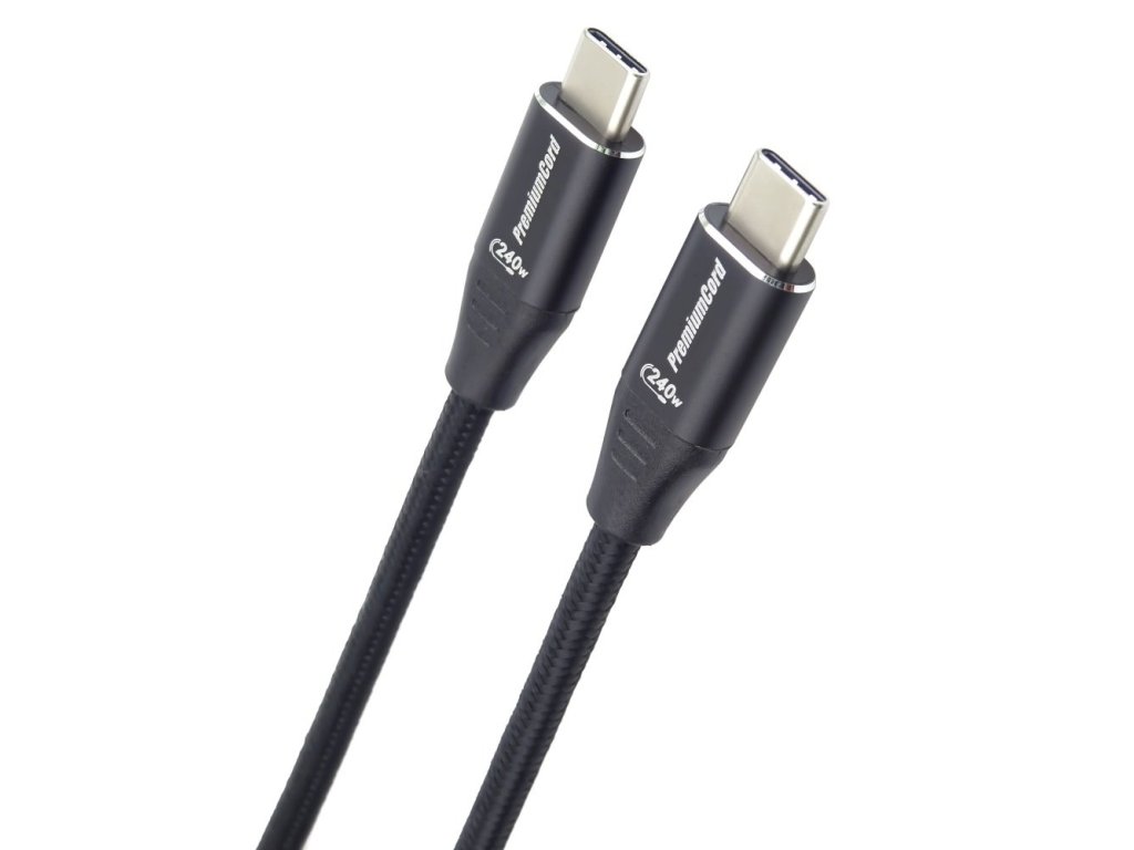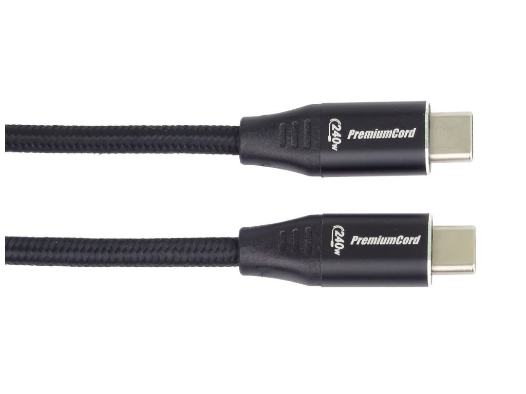 PremiumCord Kabel USB-C M/M, 240W 480Mbps černý bavlněný oplet, 0,5m