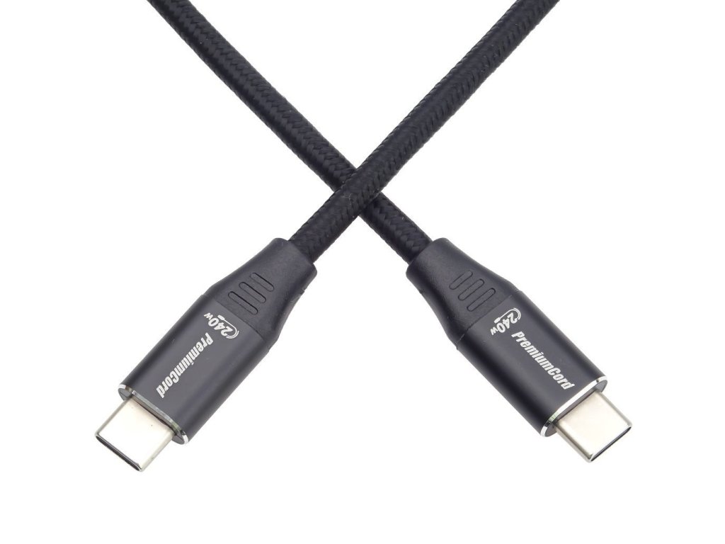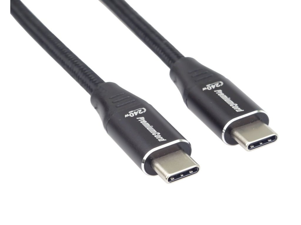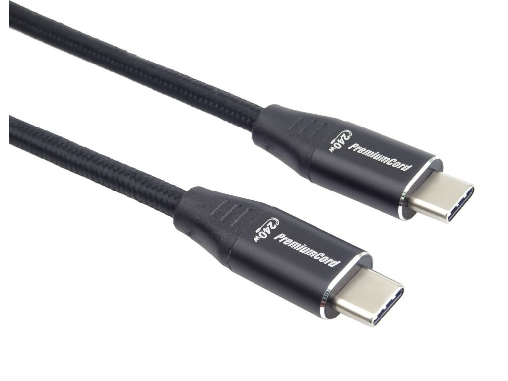 PremiumCord Kabel USB-C M/M, 240W 480Mbps černý bavlněný oplet, 1m