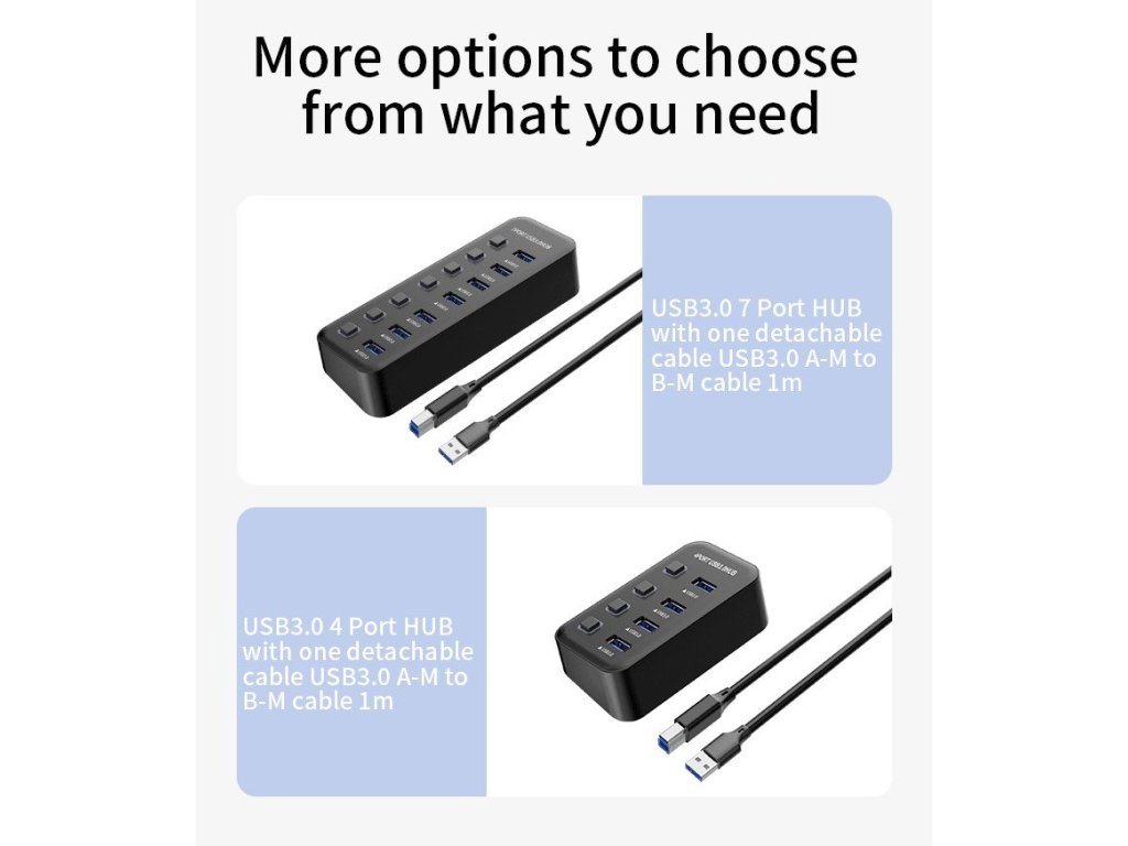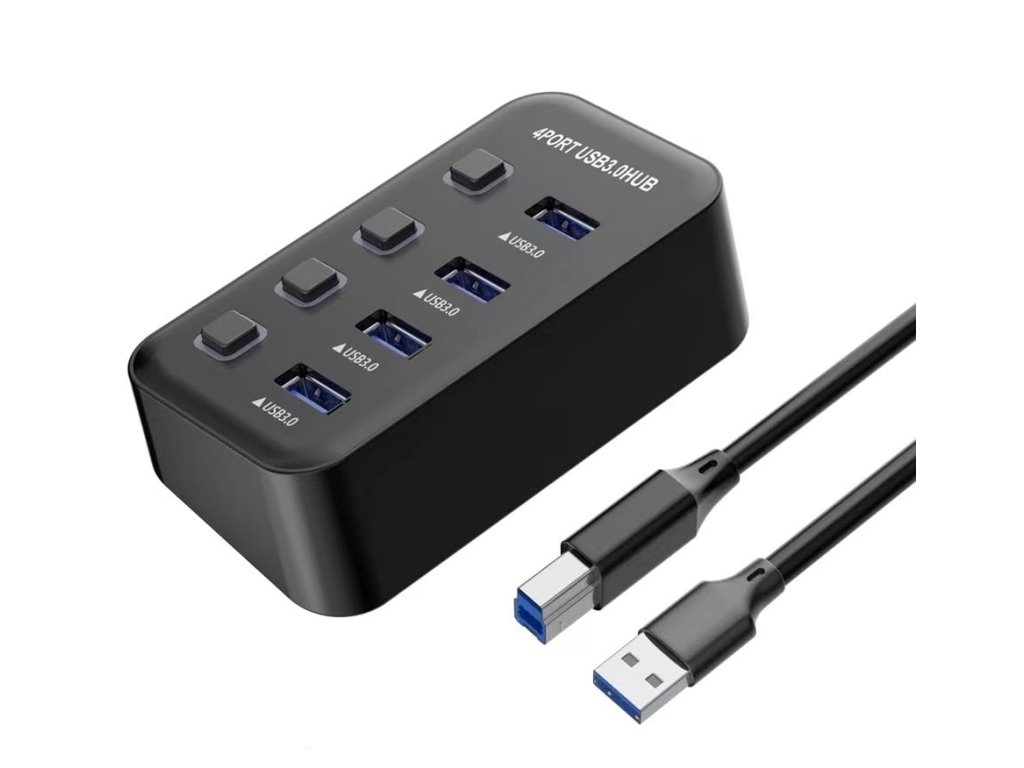 Hub umožní připojit do jednoho portu USB až 4 další zařízení USB. Zařízení je USB3.2 s rychlostí až 5Gbps. Pomocí vypínačů je možné jednotlivé USB periferie připojovat a odpojovat.