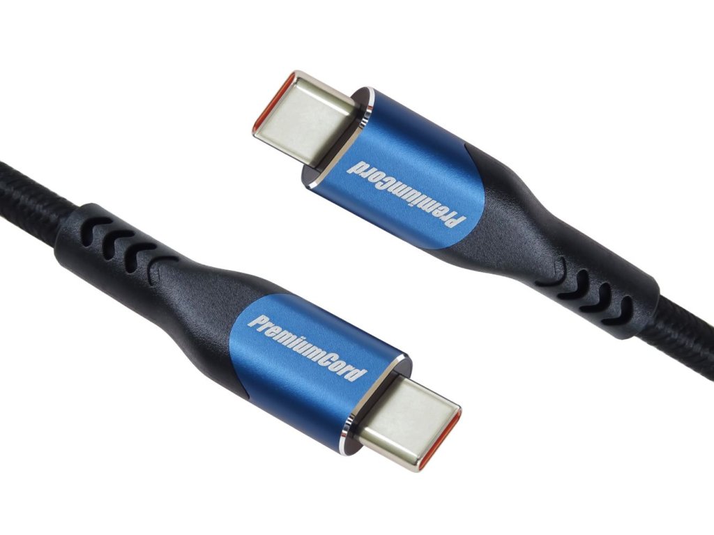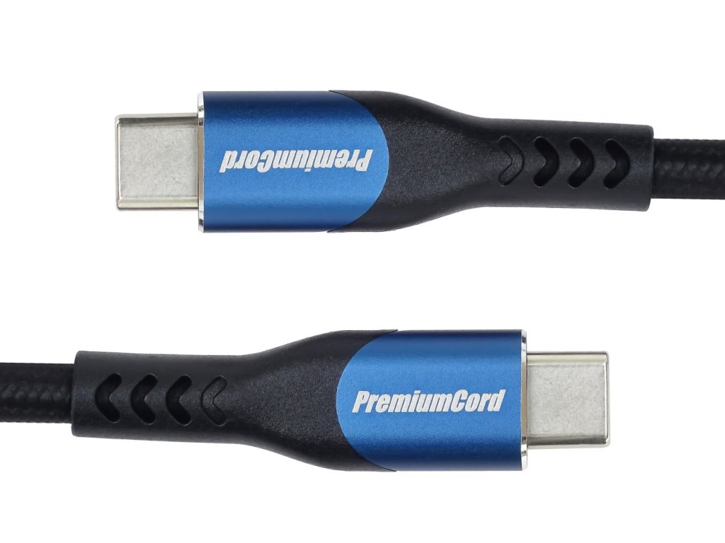 .PremiumCord USB-C kabel ( USB 3.2 GEN 2x2, 5A, 100W, 20Gbit/s ) hliníkové krytky konektorů, bavlněný oplet, 0,5m