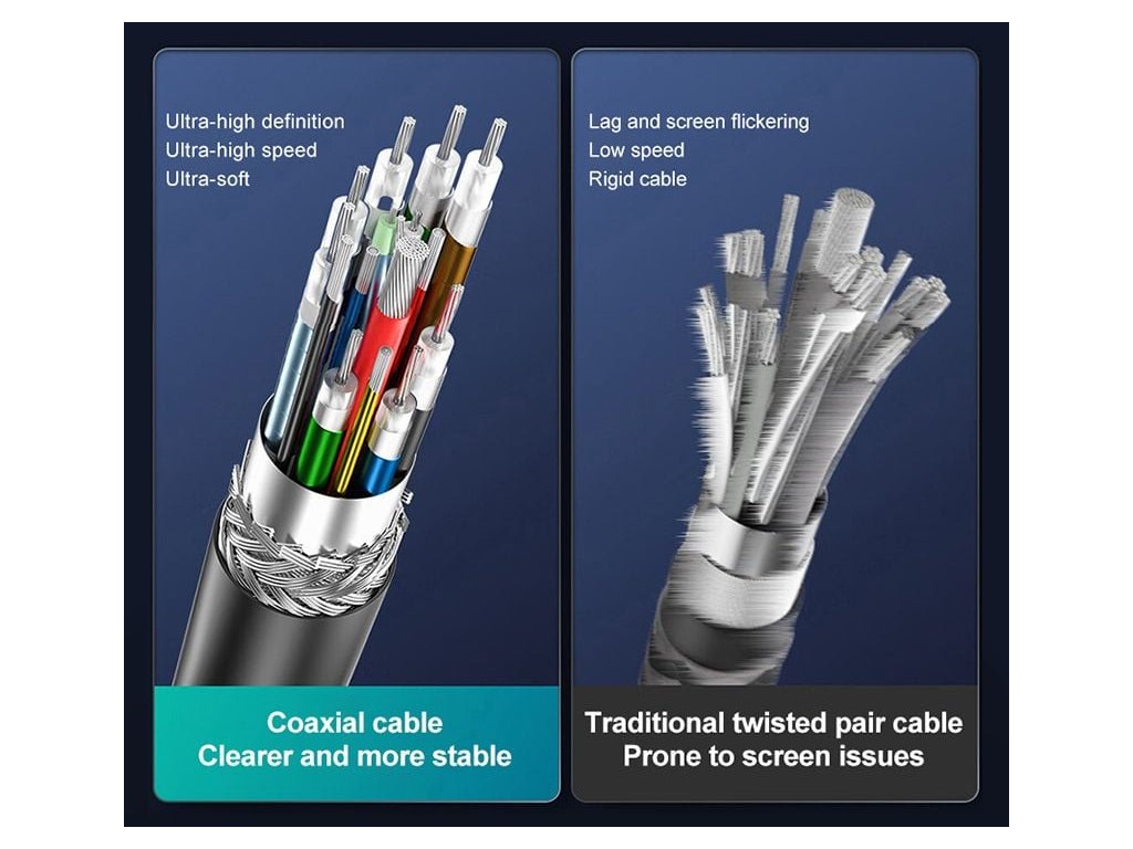 - Koaxiální měděné vnitřní vodiče umožňují vysoký datový přenos