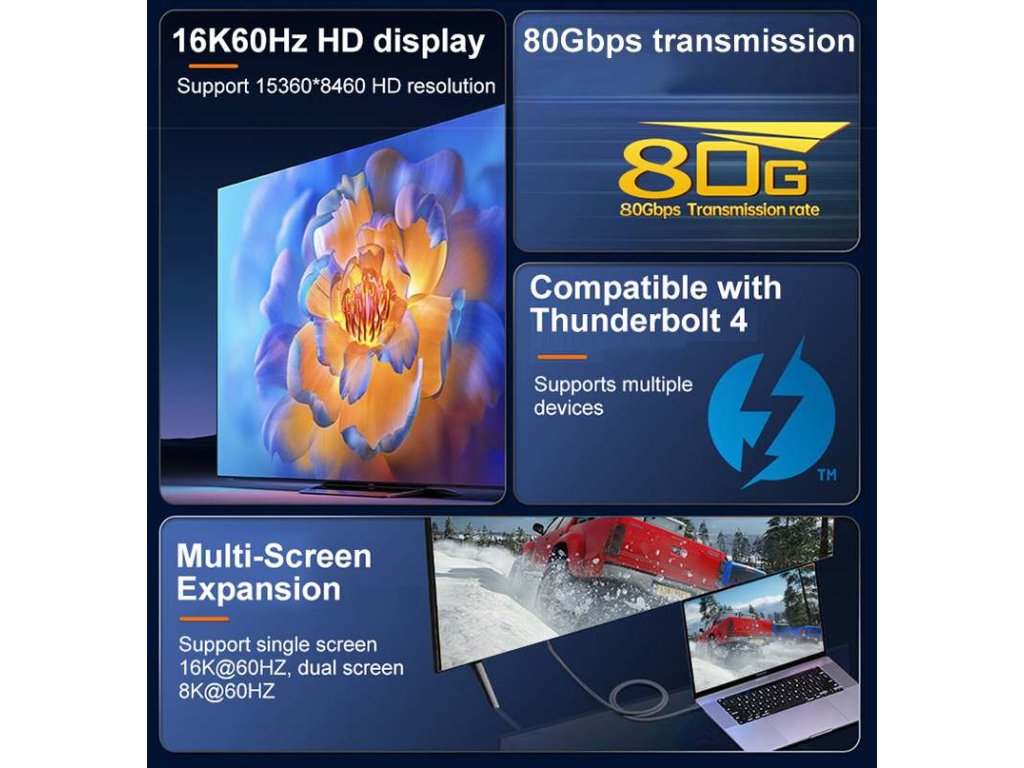 - Rozlišení videa 16K@60Hz, až 80Gbps (podporuje DisplayPort Alt Mode 2.0)