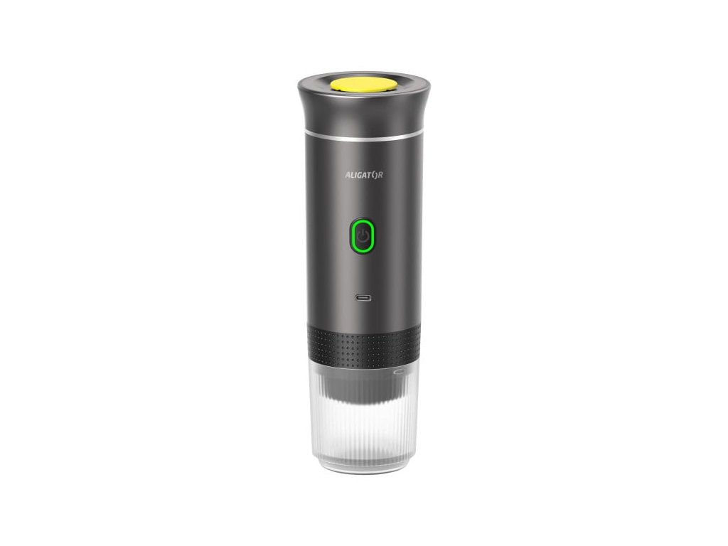Díky výkonné baterii se už nikdy nemusíte spokojit s instantní náhradou. Stačí kapsle nebo mletá káva, trocha vody a jedno stisknutí tlačítka. A když náhodou vypadne proud? Nevadí, Aligator PortaCaffé si s tím hravě poradí.