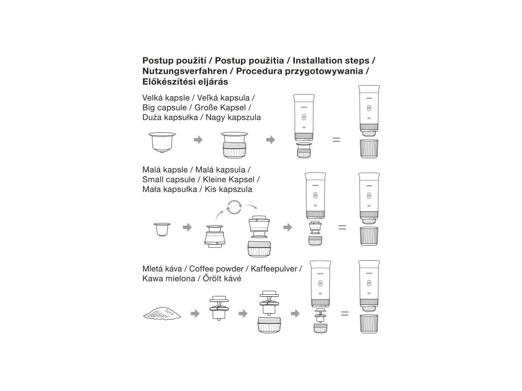 Přenosný bateriový kávovar na kapsle i mletou kávu; podpora pro kapsle Nespresso, Dolce Gusto; Espresso s ohřevem vody nebo bez něj!