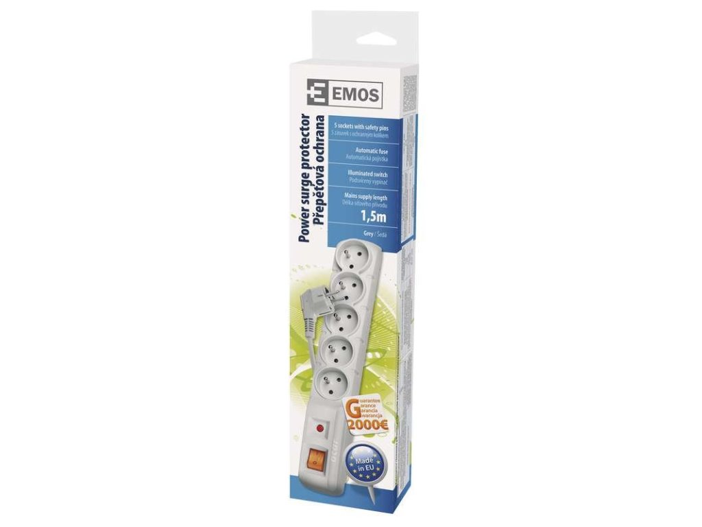 Přepěťová ochrana EMOS 5 zásuvek 1,5m šedá