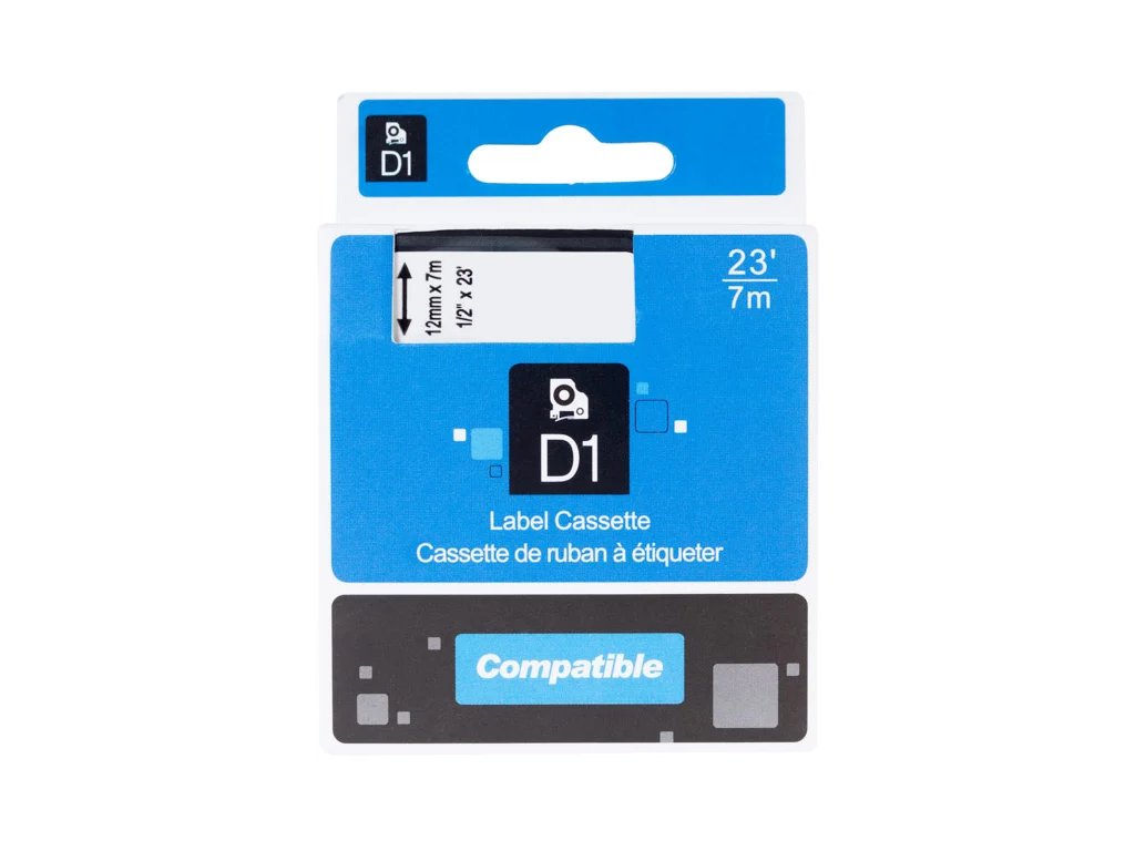 kompatibilní páska s DYMO, 45013, S0720530,12mm, 7m, černý tisk/bílý podklad, D1