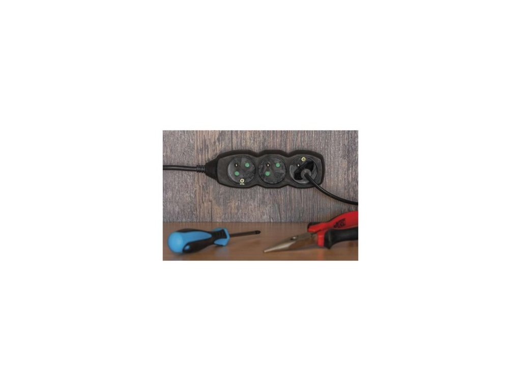 Prodlužovací přívod 3 m na 230 V~ slouží k prodloužení elektrické energie tam, kam pevná zásuvka nedosáhne.Při montáži na stěnu je nutné použít vrut se zápustnou hlavou PZ max. průměr 2,5–3 mm, délka 30–40 mm. V případě použití jiného průměru hrozí poškození plastové části otvoru. Pokud dojde k poškození plastové části otvoru, prodlužovací přívod nepoužívejte.Výhody produktuTrendová černá barva.