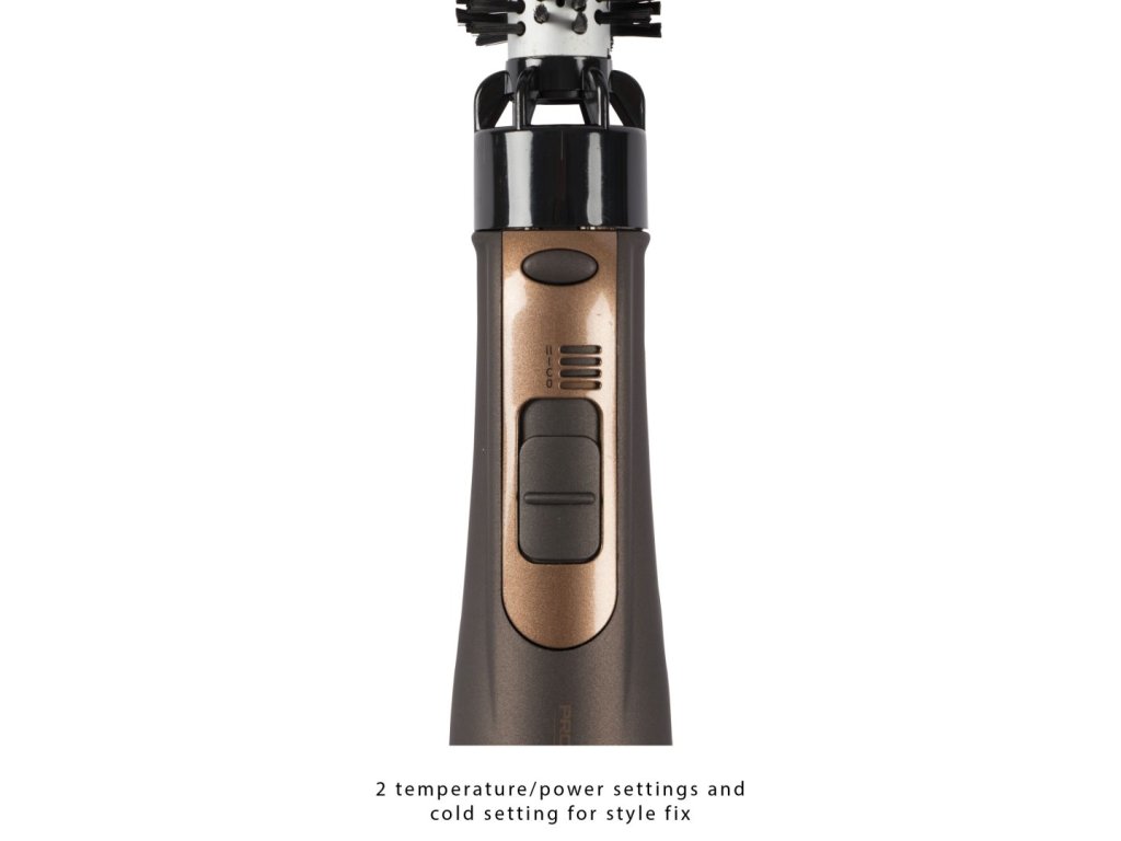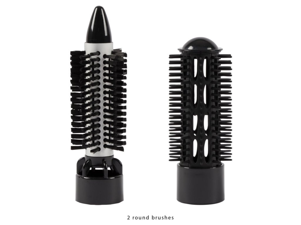 horkovzdušná kulma • příkon 800 W • 2 kartáčové nástavce • možnost nastavení teploty • ergonomické tělo • otočný napájecí kabel • oko pro zavěšení • ochrana proti přehřátí