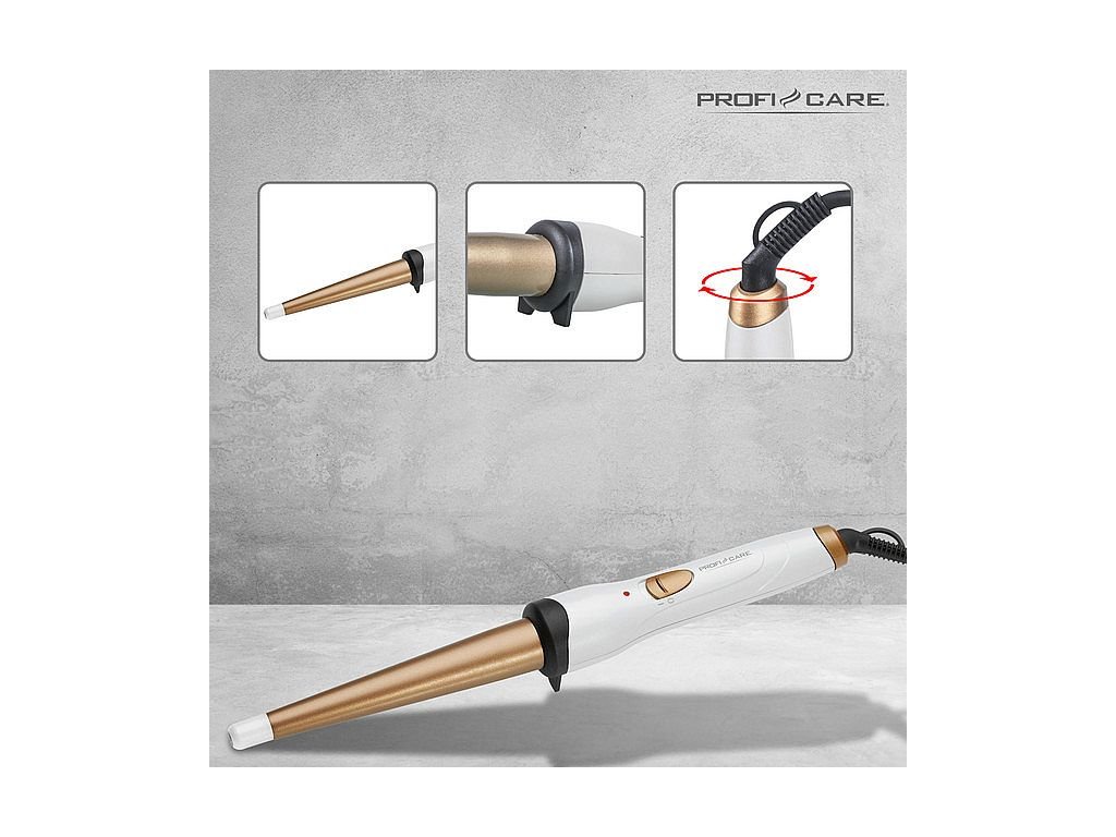 kónická kulma na vlasy - průměr 25 mm, materiál turmalín, max. teplota 220 °C, studený hrot a ionizace, počet teplot 1, doba nahřátí 60 s, příkon 25 W, délka přívodního kabelu 1,8 m, barva bílá a zlatá