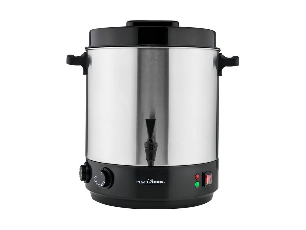 Díky funkci časovače a udržování teploty je obsluha jednoduchá a efektivní. Ochrana proti přehřátí a chodu na sucho zajišťuje bezpečnost při používání. Odolná tepelně izolovaná madla zaručují bezpečnou manipulaci, zatímco vypouštěcí kohout umožňuje snadné nalévání horkých nápojů, jako je svařené víno nebo punč.