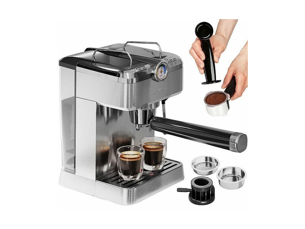 Profesionální espresso kávovar, 20 barů, Nespresso kapsle, parní tryska, předspařování, programovatelné množství, 1.5l nádržka, 1100 W.