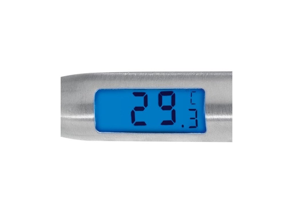 Kuchaře určitě zaujme kvalitní provedení produktu, jenž je vyroben z nerezové oceli a doplněn o modře podsvícený LCD displej. Výrobek zaručuje velmi rychlou dobu měření, v rozmezí 4 až 10 sekund s vysokou přesností teploty v rozsahu 45 °C - 200 °C. Na displeji se vám následně zobrazí teplota, ve vámi zvolených °C nebo °F, kterou je možné za pomoci funkce s názvem poslední měření teploty uložit.