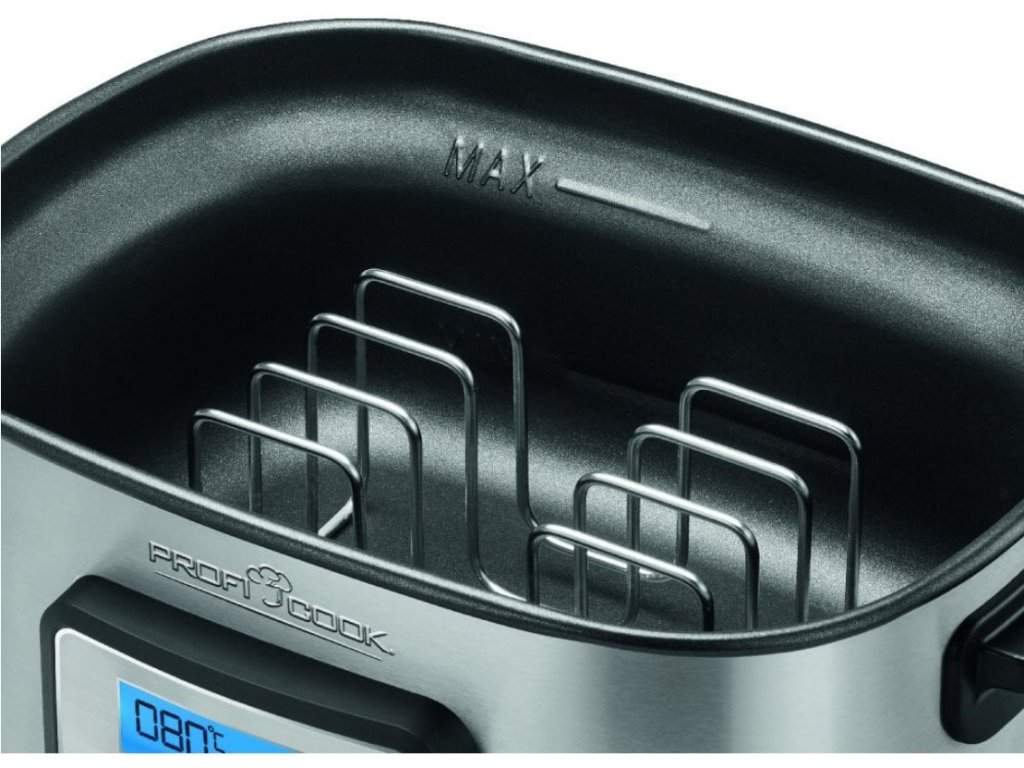 Informace se zobrazují na modře podsvíceném LCD displeji. Teplota lze nastavit v rozmezí 45-90 °C. Doba vaření až na 72 hodin. Objem nádoby, jejíž povrch je nepřilnavý, je 8,5 l.