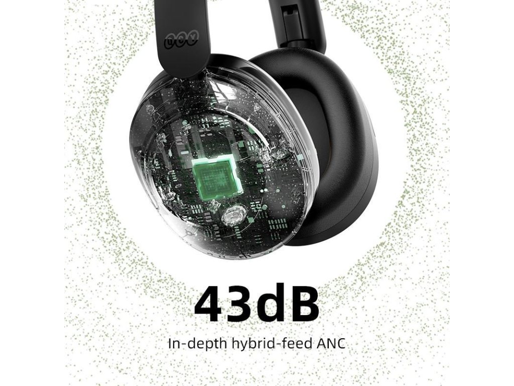 QCY H4 - Bezdrátová sluchátka - s mikrofonem, přes hlavu, okolo uší, hybridní potlačení hluku, uzavřená konstrukce, 3,5 mm Jack, Bluetooth 5.3, podpora A2DP, AAC, AVRCP, HFP a SBC, Ambient sound, Hi-Res audio, certifikace IPX5, frekvenční rozsah 20-20000 Hz, citlivost 116 dB/mW, impedance 32 Ohm, měnič 40 mm, výdrž baterie až 70 h