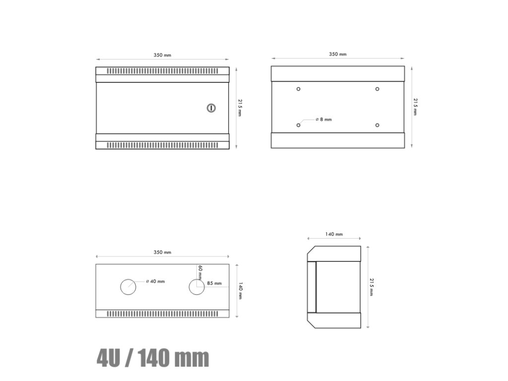 DATACOM 10" rozvaděč 4U/140 mm (plech) černý