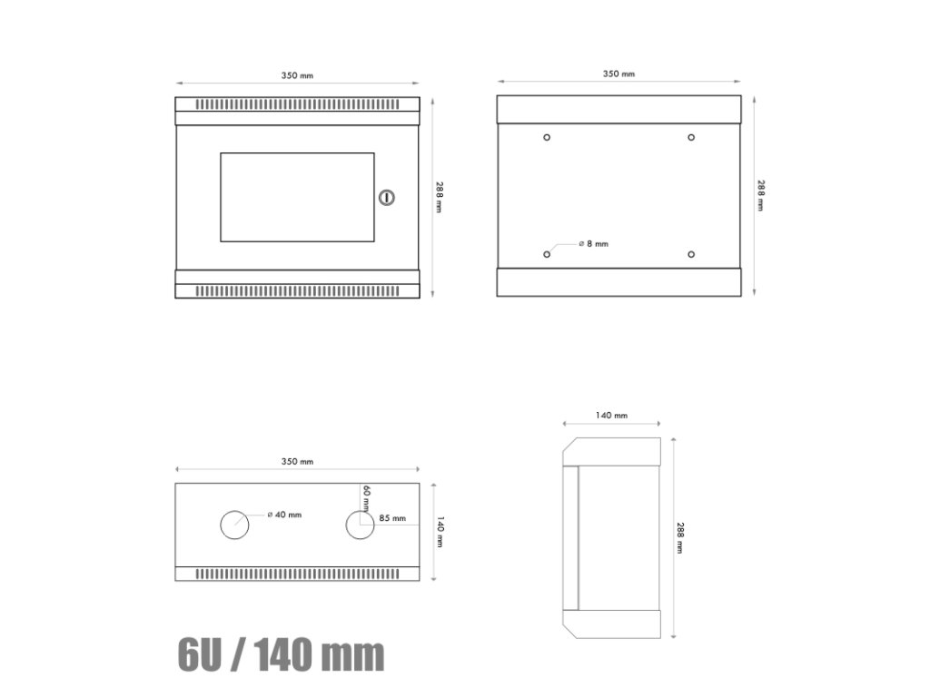 10" rozvaděč pro datové sítě, 6U vertikální lišty, svařovaný ocelový skelet, perforace pro odvětrání, zamykatelné dveře. Krytí IP20. Snadná montáž.