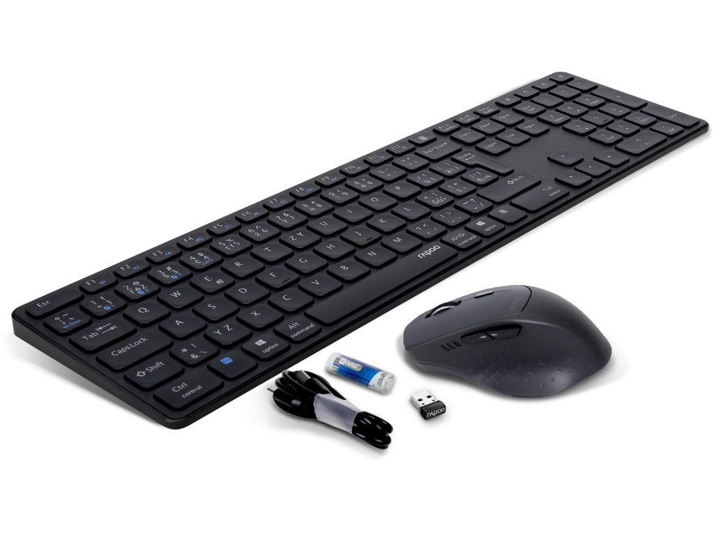 Tato ultratenká stolní souprava spojuje prvotřídní materiály s elegantní konstrukcí a pohodlím nezkrácené klávesnice. Díky pevné hliníkové základně je tělo klávesnice odolné a pevné. Zároveň dodá každému pracovnímu místu stylový punc. Klávesnice E9800M je nejen vyspělá konstrukcí, ale také funkcionalitou. Nabízí vícerežimovou technologii připojení firmy Rapoo – prostřednictvím spolehlivého bezdrátového vysílače 2,4 GHz, Bluetooth 3.0 a 5.0 – umožňuje současné připojení a přepnutí několika zařízení (s automatickým párováním). Myš v této sadě disponuje vysoce výkonným optickým senzorem, plně nastavitelným v rozsahu 600 až 1600 DPI a tichými spínači. Kromě toho je klávesnice vybavena ekologicky šetrným dobíjecím akumulátorem tak, abyste si mohli plně vychutnat volnost bez kabelů.