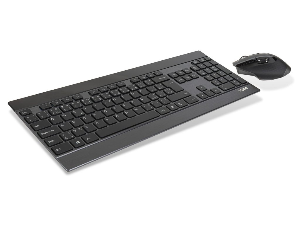 Rapoo 9900M, multi-mode bezdrátový ultra-slim set klávesnice a myš, připojení současně k více zařízením, Bluetooth 3.0, 4.0 a 2.4 GHz, nano USB přijímač, CZ/SK