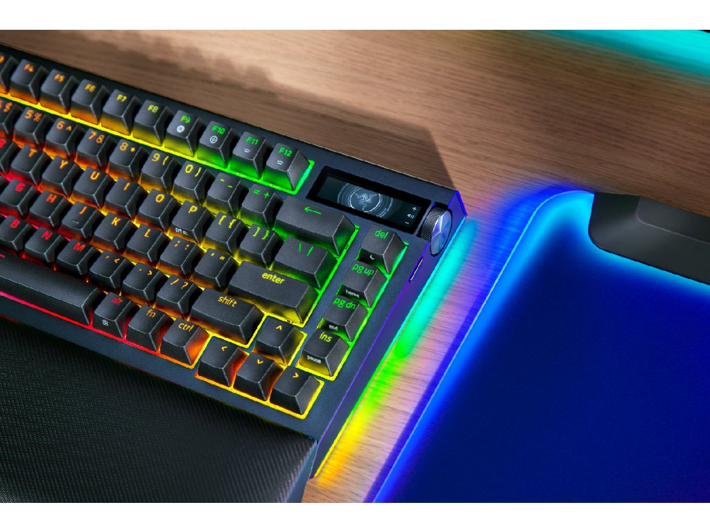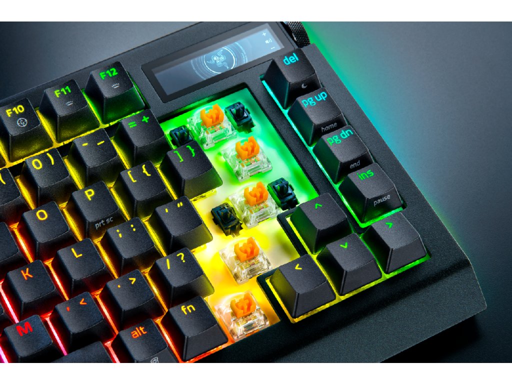 Herní bezdrátová mechanická 75% klávesnice, Orange Switches s možností hot-swapu, Razer Chroma RGB podsvícení, výdrž baterie až 200 hodin, OLED displej, US rozložení kláves