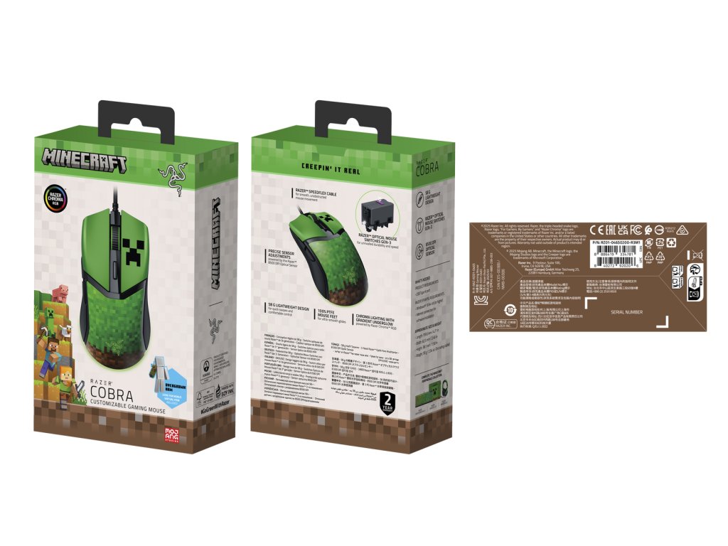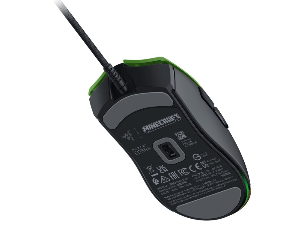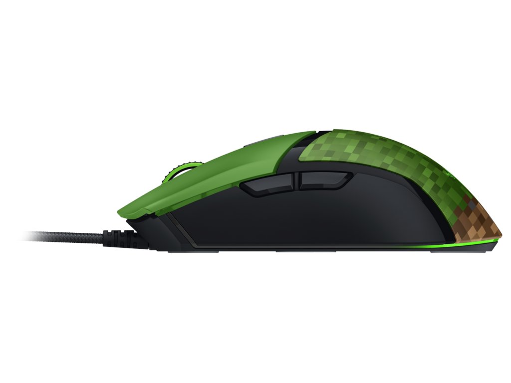 Herní myš, optická, až 8500 DPI, 6 programovatelných tlačítek, kabel Razer Speedflex cca 2m, Razer Chroma RGB podsvícení, váha 56g, zelená s motivem Minecraft