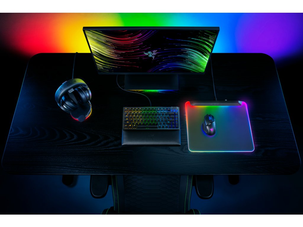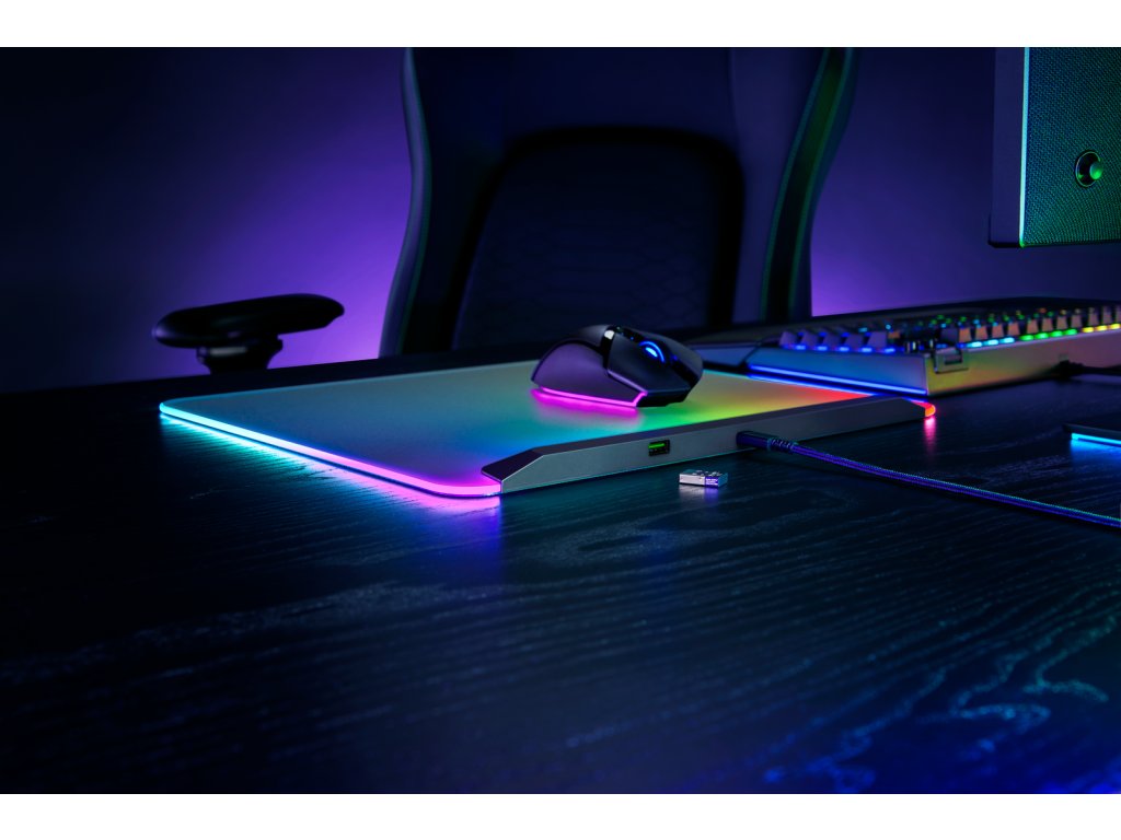 Podložka pod myš, plastová, 360x275mm, plošné Razer Chroma RGB podsvícení, integrovaný USB port