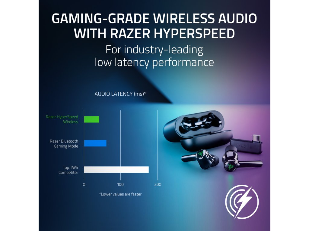 Předěláno, aby způsobilo revoluci ve zvukové scéně – Razer Hammerhead Pro HyperSpeed se vrací s všestranností, která mění hru, a nejlepší konektivitou ve své třídě. Díky technologii Razer HyperSpeed, zvuku s certifikací THX® a Razer Chroma™ RGB je čas zažít novou úroveň svobody a stylu zvuku.