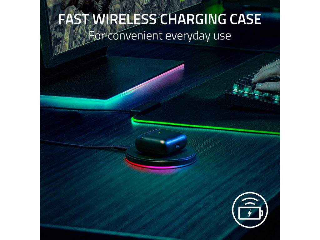 Nové pouzdro pro bezdrátové nabíjení má dalších 24 hodin výdrže baterie. Spárujte jej s Razer Charging Pad, jinými bezdrátovými nabíječkami nebo použijte USB-C port pro kabelové dobíjení.