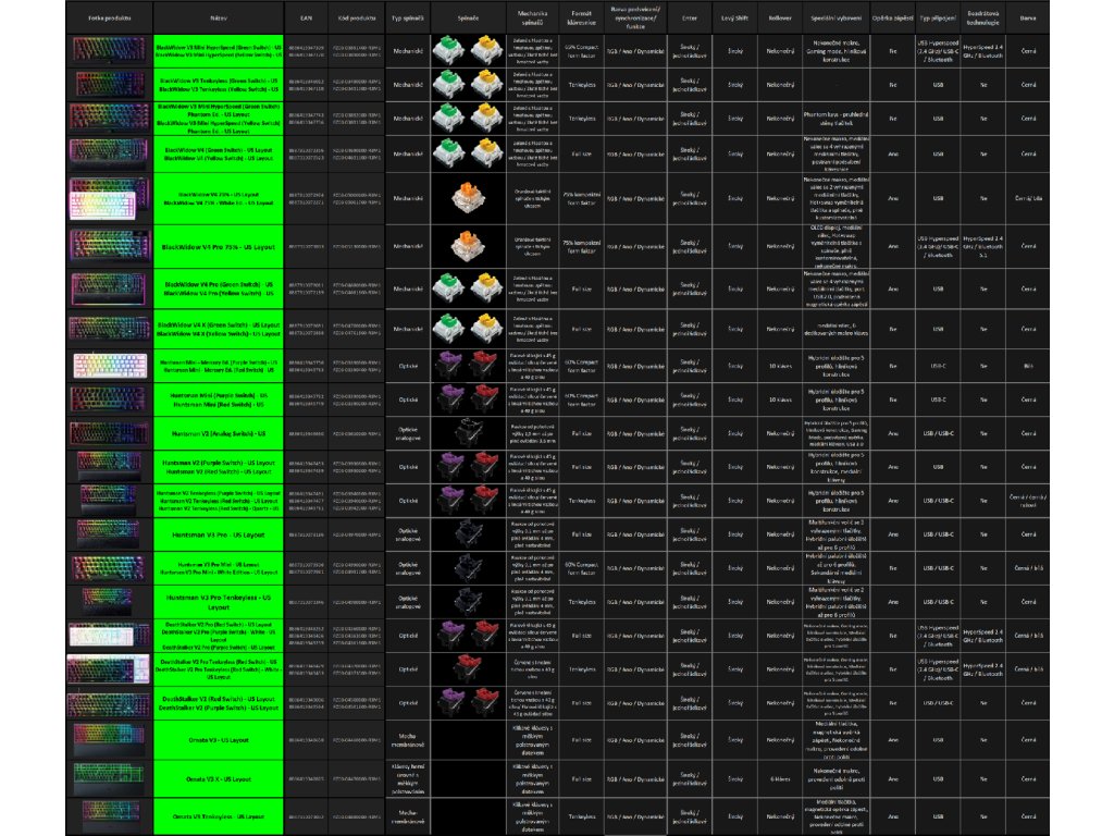 | Typ spínačů kláves: | Clicky (klikací) |