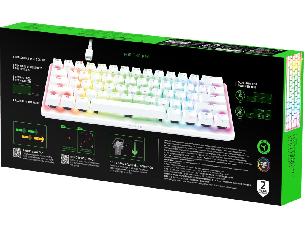 Herní drátová analog-optická 60% klávesnice, Razer Chroma RGB podsvícení, US rozložení kláves, bílá