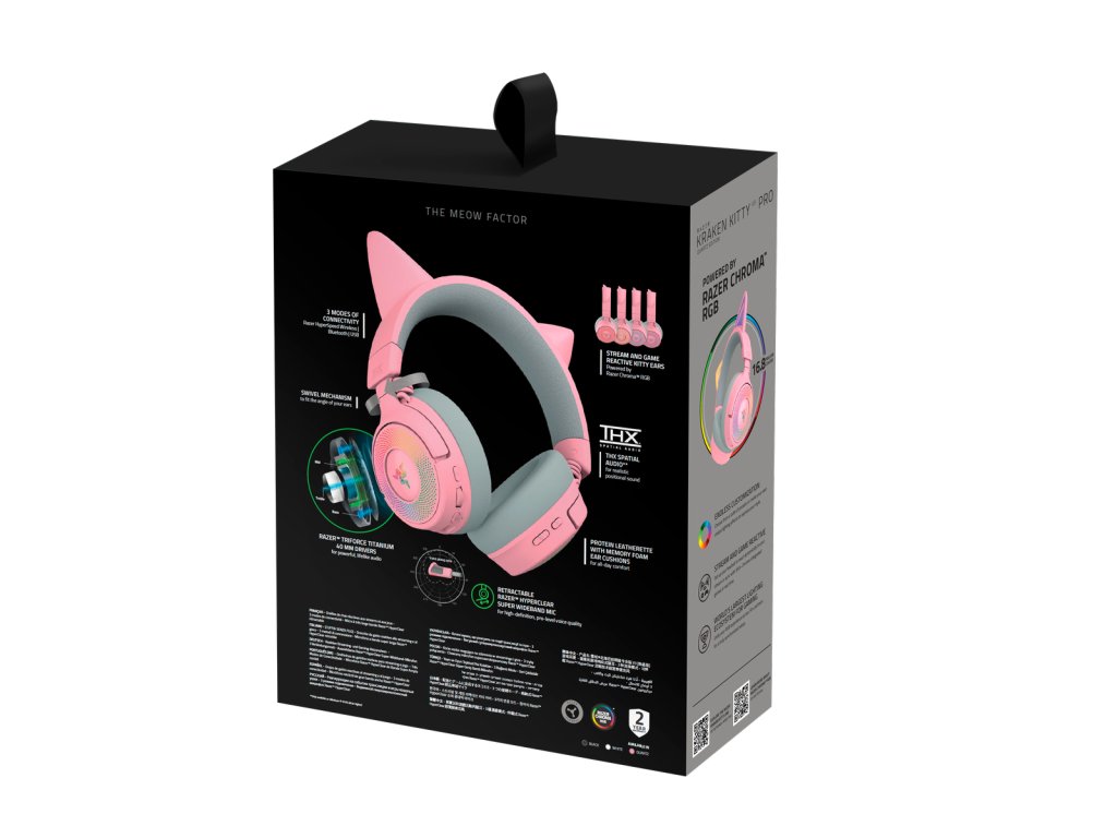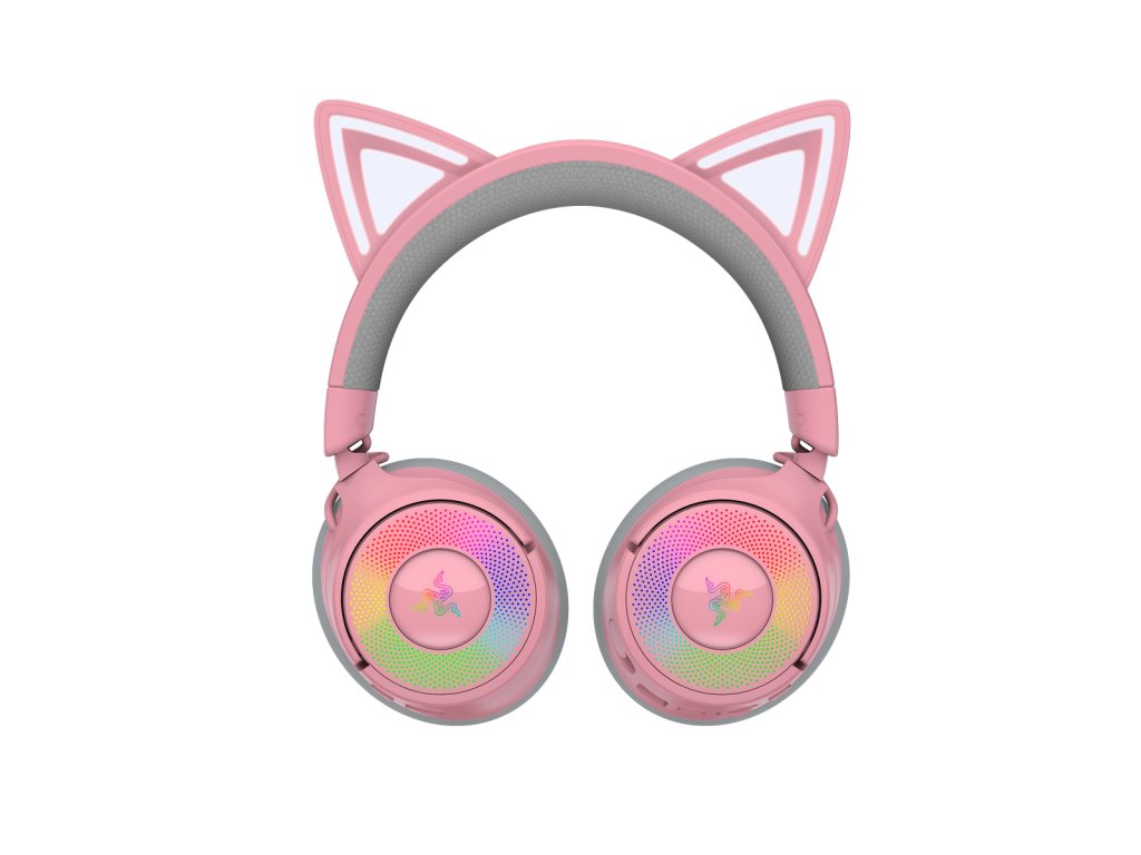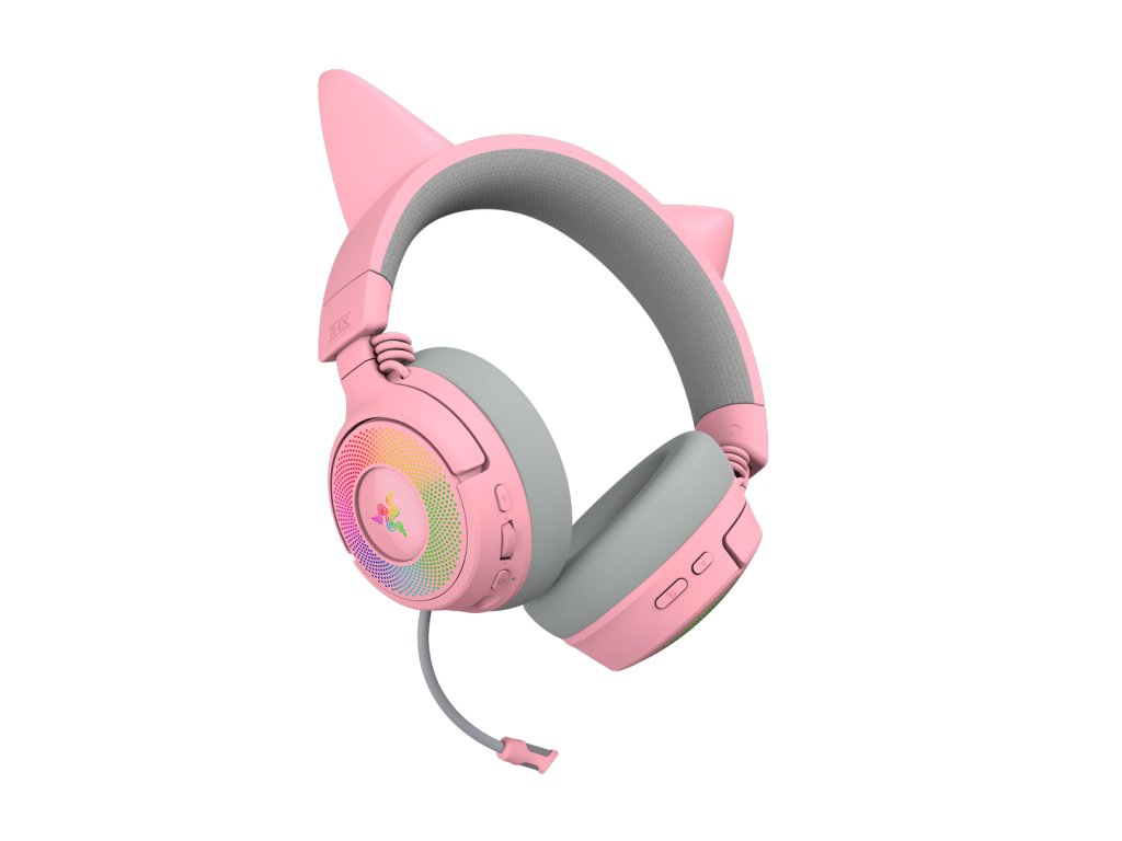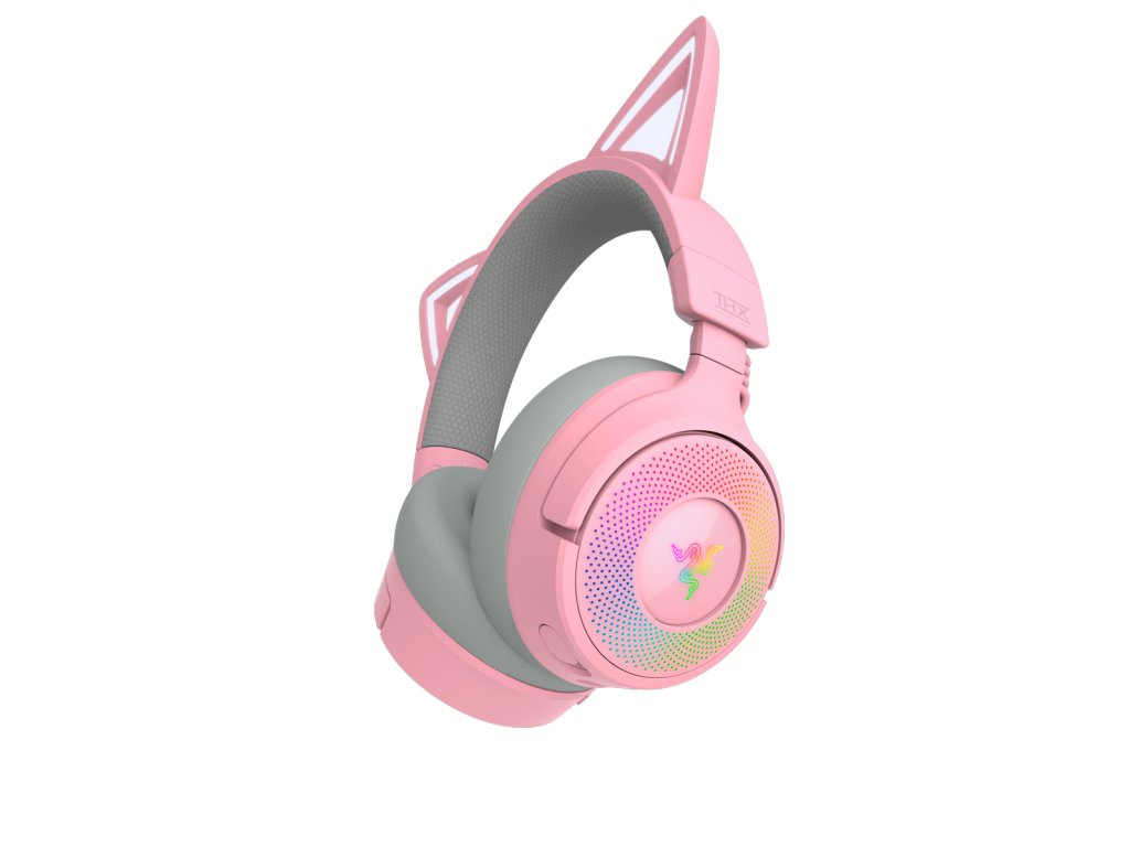 Udělejte si proslov s bezdrátovými herními sluchátky Razer Kraken Kitty V3 Pro s nejikoničtějším designem kočičích náušníků ve světě her, podsvícenými technologií Razer Chroma™ RGB. Díky 3 všestranným režimům připojení, super širokopásmovému mikrofonu a reaktivnímu osvětlení buďte roztomilí, pohodlní a stylově soutěživí.