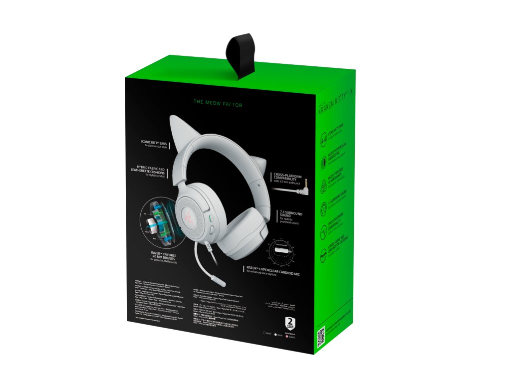 Uvolněte svou vnitřní kočičí energii s Razer Kraken Kitty V3 X, drátovým headsetem s ikonickými kočičími ušima, který vám umožní hrát hry, streamovat a poslouchat hudbu stylově. Tento lehký headset, navržený pro celodenní pohodlí, poskytuje pohlcující zvuk a křišťálově čistý hlasový záznam – ať už sledujete nepřátele, chatujete živě nebo znovu objevujete oblíbenou skladbu – a zároveň si zachováváte bez námahy rozkoš.