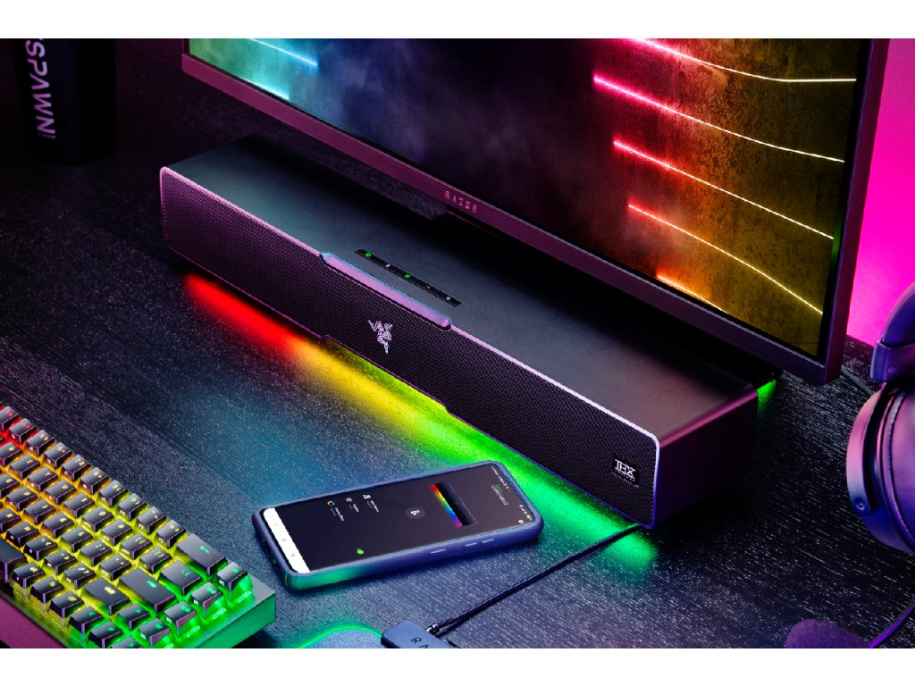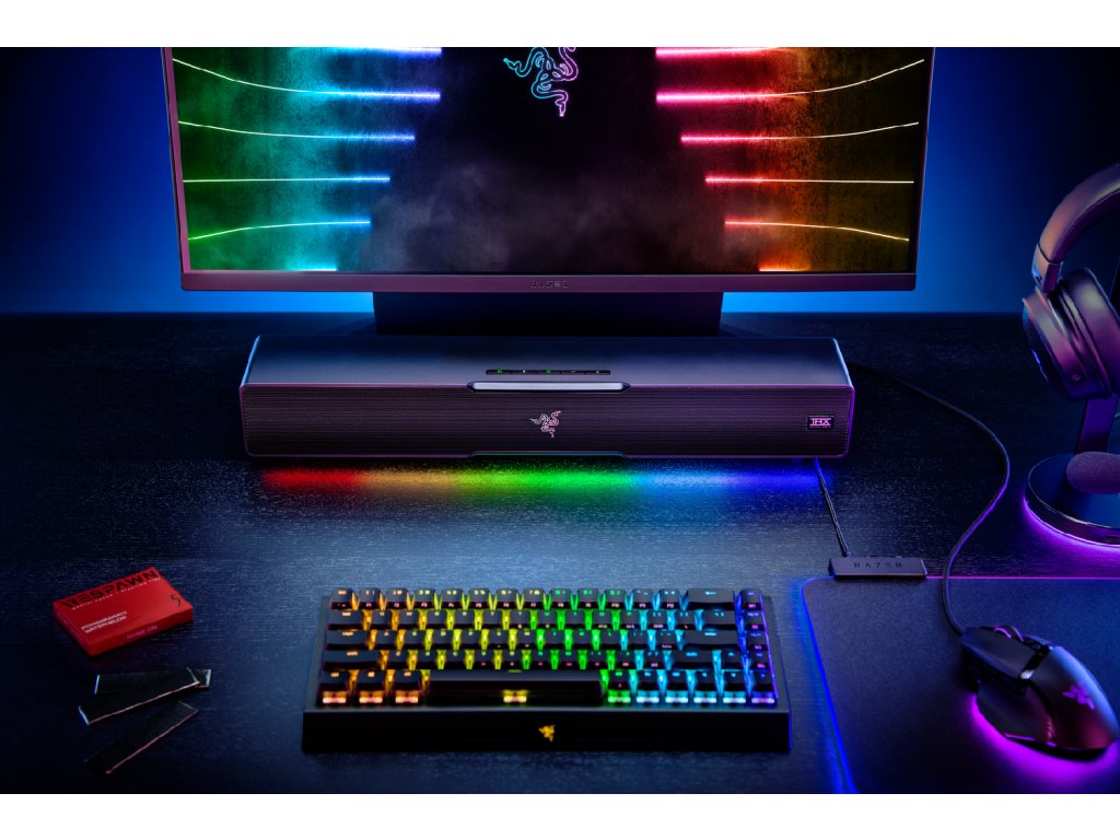 Soundbar + subwoofer, 65W, připojení přes Bluetooth/USB, Razer Chroma RGB podsvícení, THX prostorový zvuk, černé