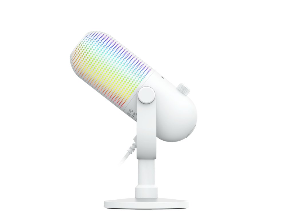 Stolní mikrofon, kondenzátorový, USB, Razer Chroma RGB podsvícení, funkce Tap-to-Mute - ztlumení klepnutím, bílý
