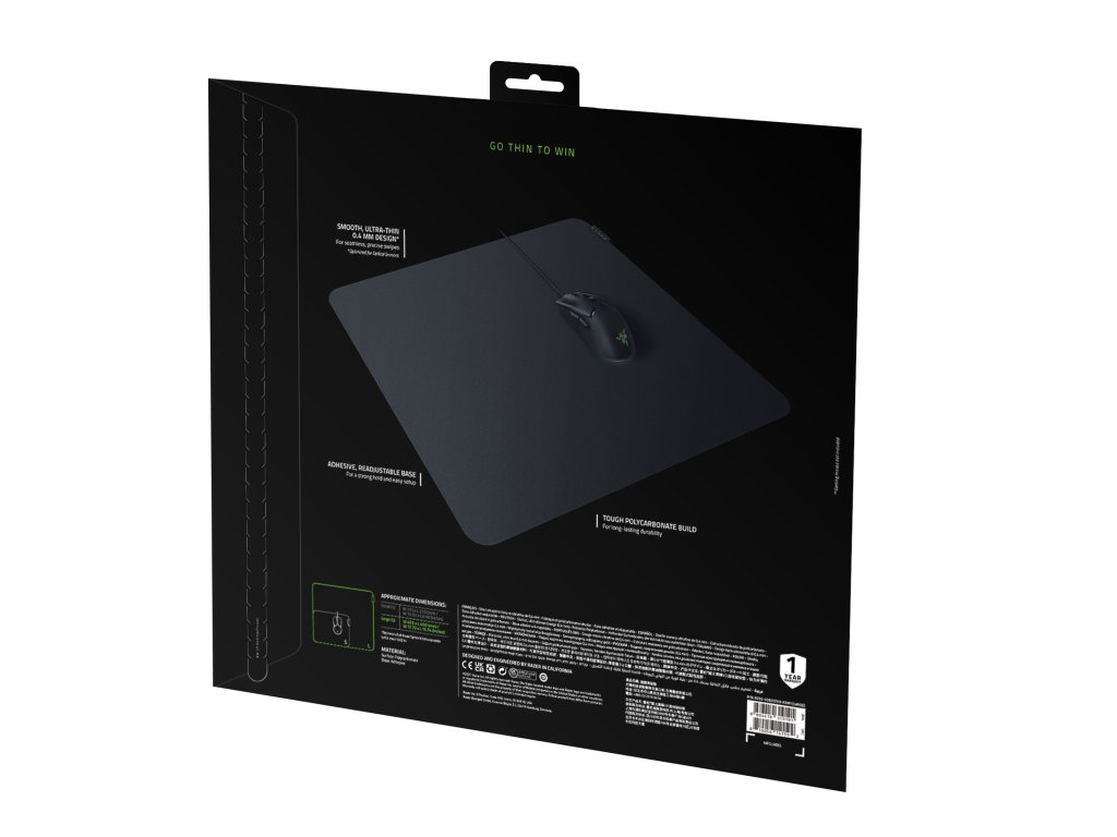 Svěží a elegantní černý vzhled je vylepšen také o hladší povrch, který je ukotven přilnavou spodní stranou která zabraňuje posunutí podložky po povrchu. Její tvrdý, hladší povrch nabízí plynulé a přesné sledování optimalizované pro optické senzory.