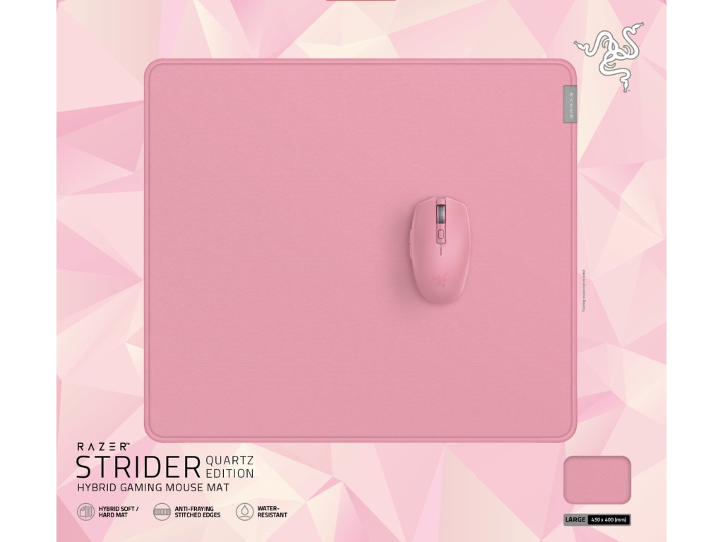 Razer Strider má na okrajích ochranné prošívání, které zabraňuje jakémukoli roztřepení, které by mohlo vzniknout při intenzivním používání nebo cestování. Povrch Razer Strider dokáže odstranit jakékoli rozlité tekutiny, což také usnadňuje běžné čištění rychlým setřením.