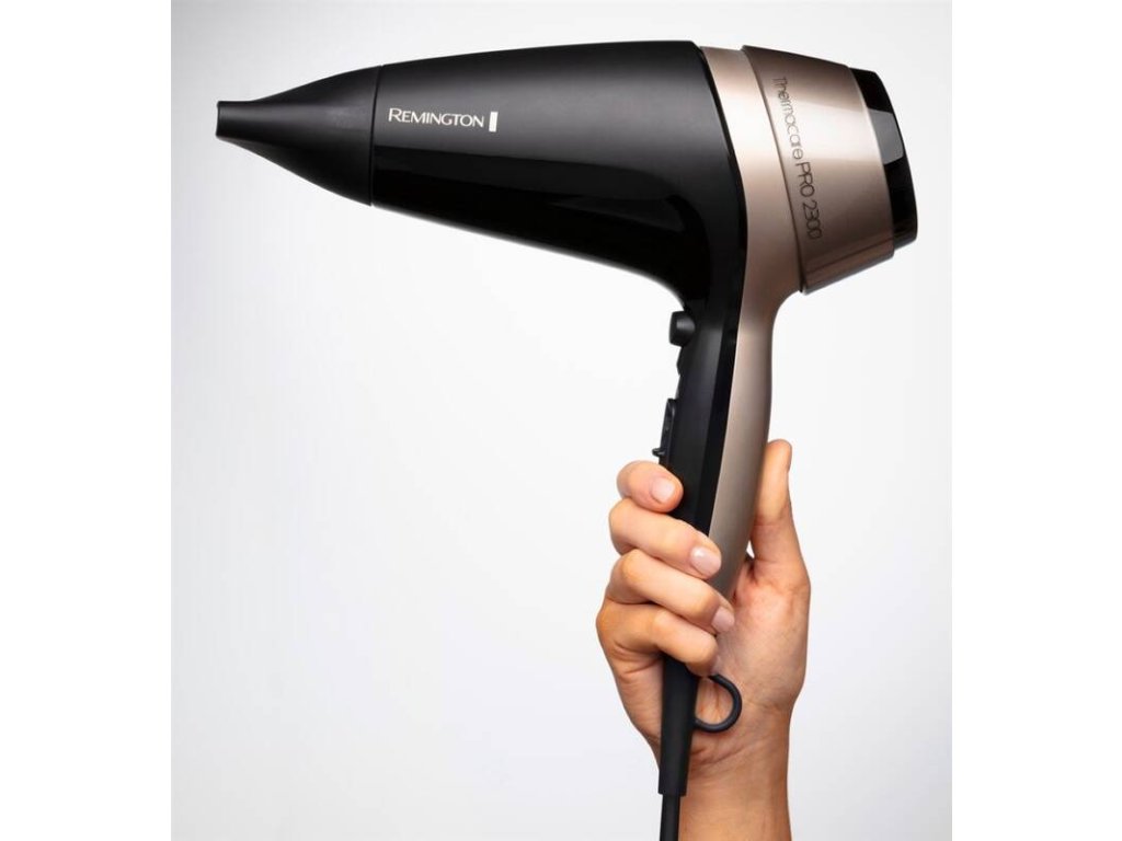 Ionizace – o 90 % více iontů** pro lesklé vlasy bez elektrizování (**vs. běžný vysoušeč vlasů Remington)