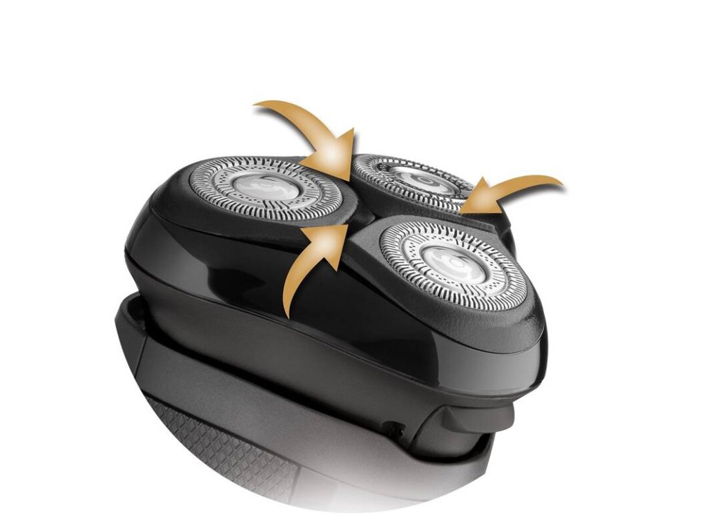 Flexibilní čepele a otočný krk – přizpůsobí se konturám obličeje