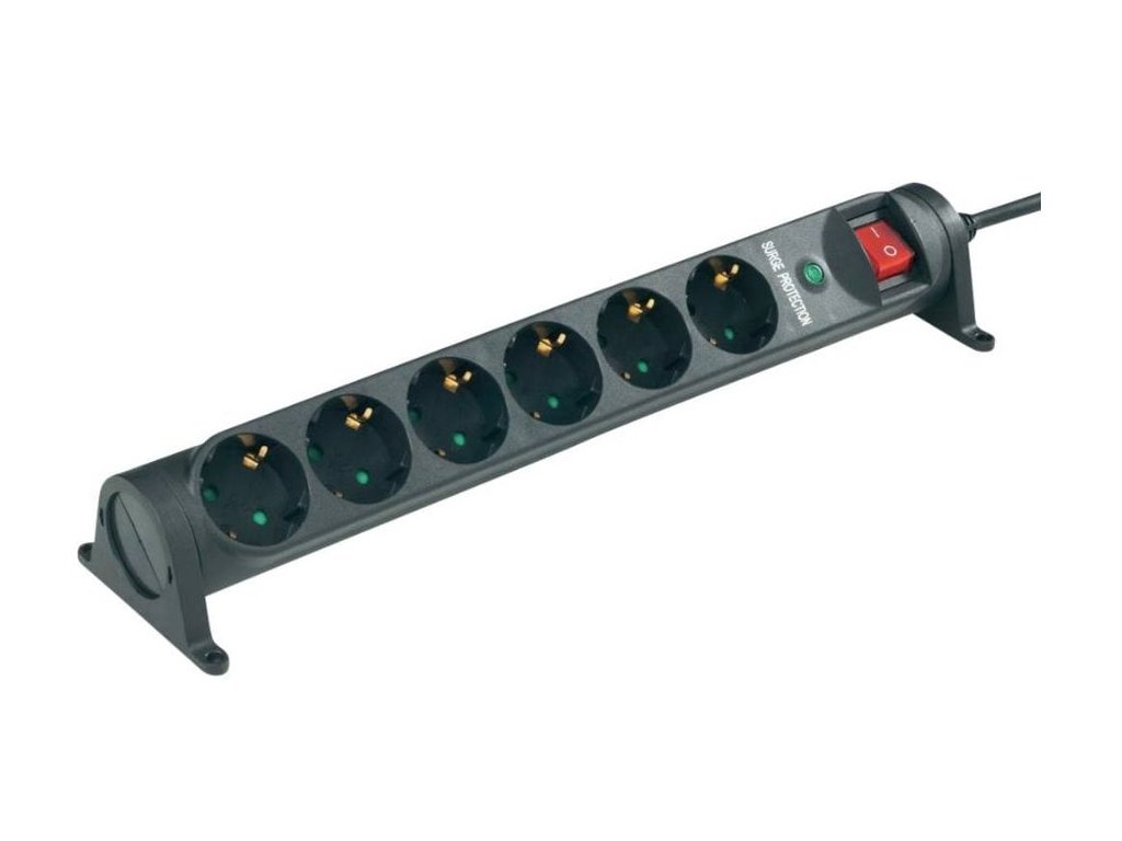 Zásuvková lišta je uložena v otočném držáku a je vhodná pro pevnou montáž. Lištu lze otočit do polohy, která je ideální pro vaše pracoviště. Spínač zapuštěný do pouzdra vám umožňuje vypínat elektrické napájení všech připojených spotřebičů. Při aktivaci ochrany proti přepětí zhasne zelená provozní kontrolka.