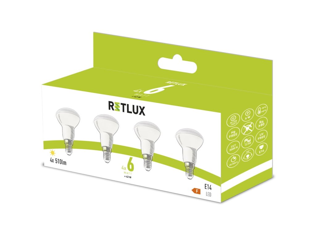 Sada 4ks LED žárovek, příkon 6 W (4x6 W), E14, světelný tok 510 lm, 12 000 spínacích cyklů, barva světla: 3000K teplá bílá