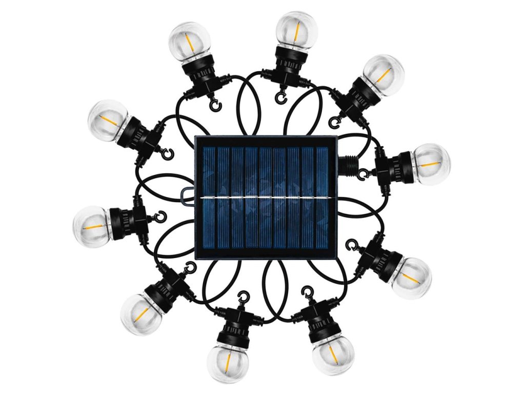 Solární světelný řetěz s filamentovými LED žárovkami