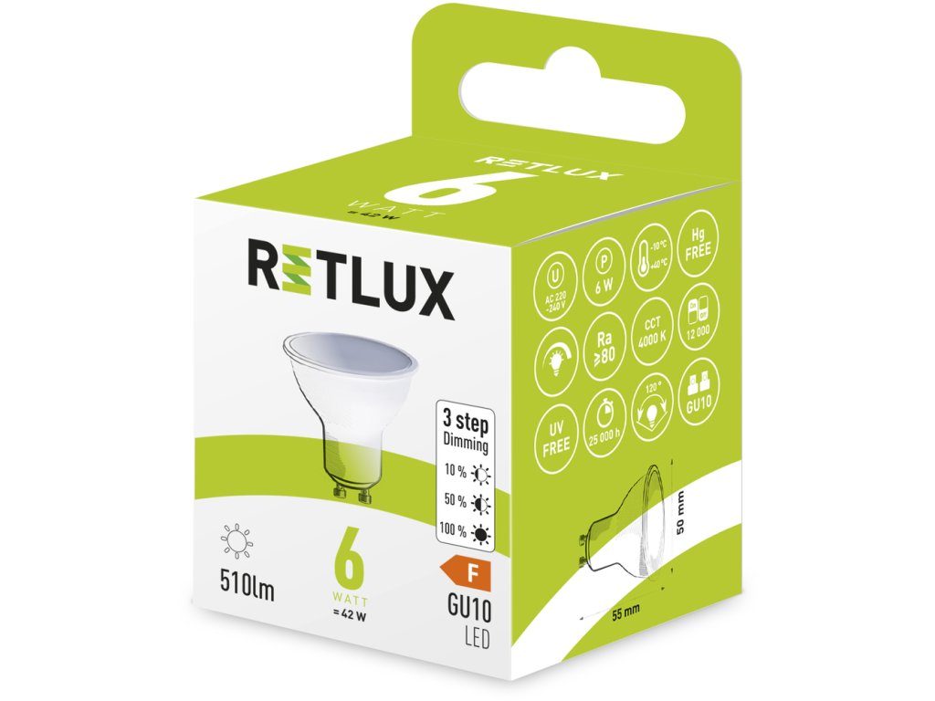 Retlux RLL 448 GU10 LED žárovka stmívatelná DIMM 6W