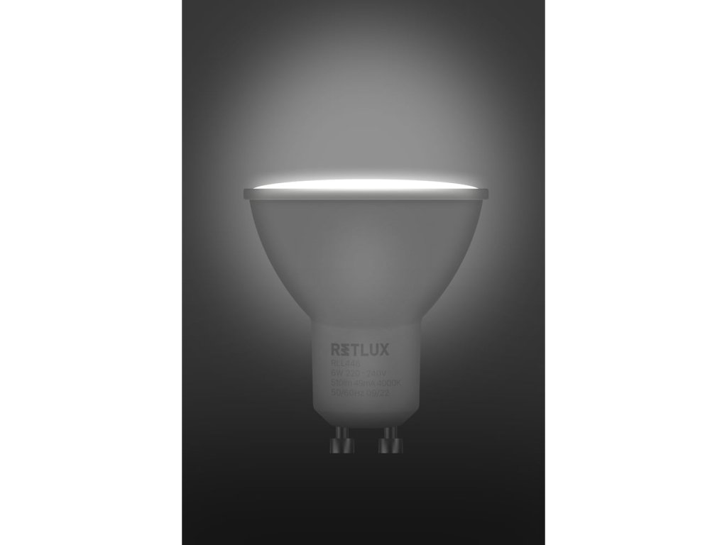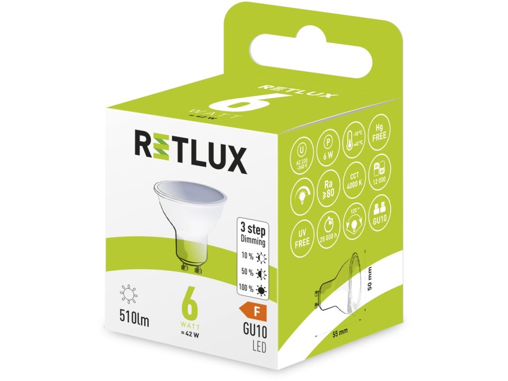 LED žárovka stmívatelná ve 3 krocích běžným vypínačem, příkon: 6 W, patice GU10, 220-240V, 4000K - studená bílá, životnost více než 25000h, světelný tok: 510 lm