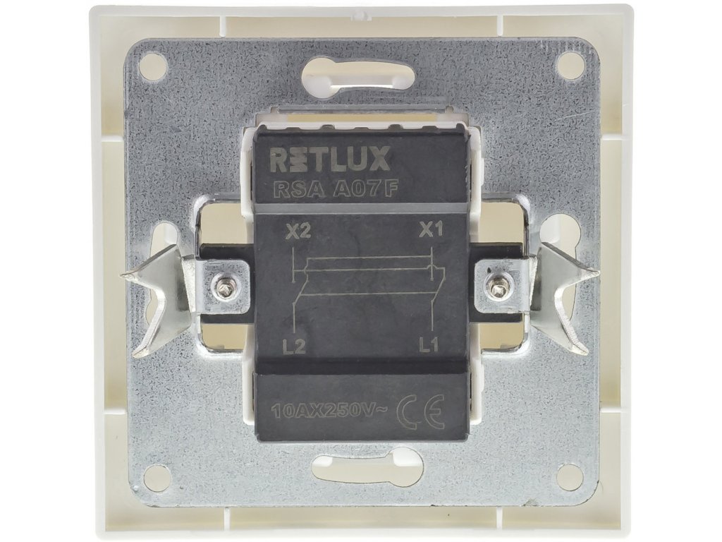 Vypínač Retlux RSA A01F v bílé barvě je jednopólový spínač řady č. 1 s rámečkem. Je vhodný do mělkých elektroinstalačních krabic.