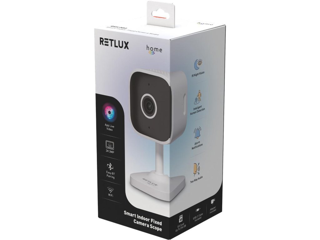 Vnitřní kamera Scope hlídá domácnost pomocí AI detekce pohybu, osob i zvuků. Díky živému přenosu ve vysokém rozlišení 2K jsou všechny detaily jasně vidět a přes aplikaci RETLUX home je možné pohodlně sledovat okolí kamery odkudkoli. Instalace i párování jsou rychlé a jednoduché a ovládání zvládne opravdu každý.