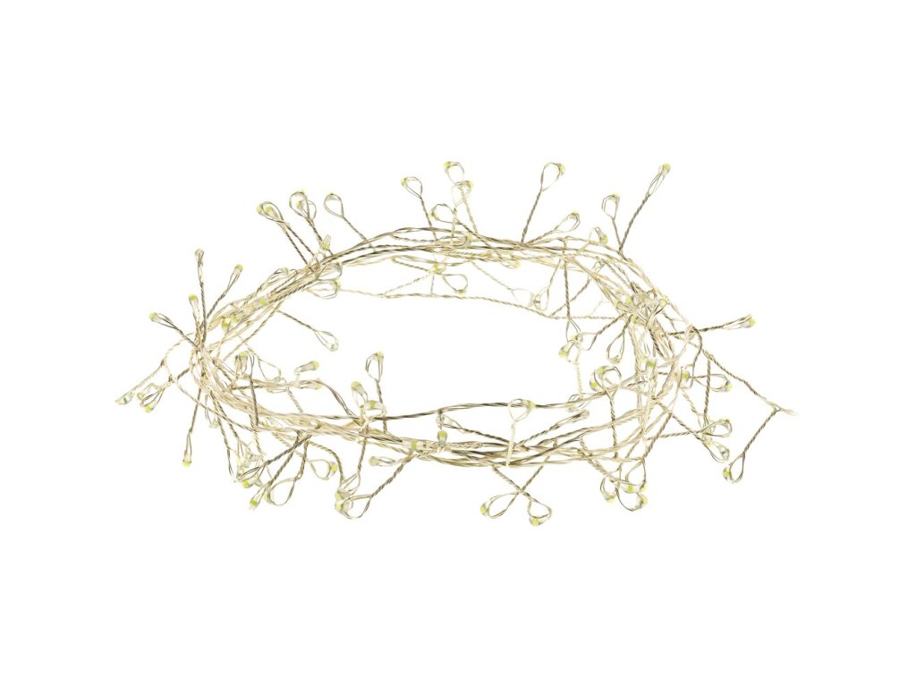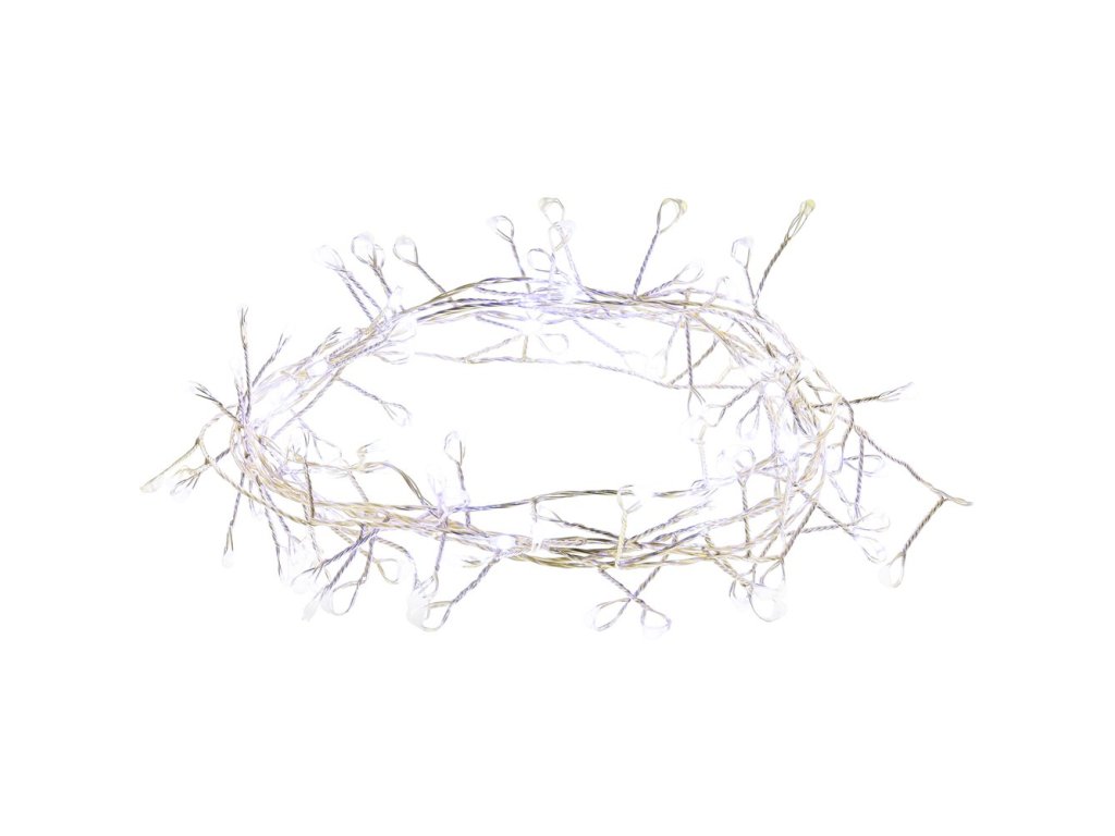 vánoční nano LED řetěz • 100× nano LED • délka 2,4 m • 5m přívodní šňůra • použití v interiéru i exteriéru • příkon 2,1 W • studená bílá barva • napájení ze sítě • krytí IP44