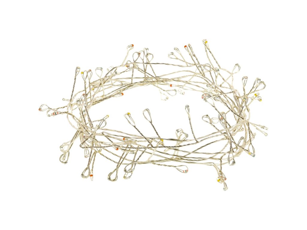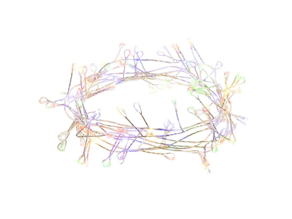 vánoční nano LED řetěz • 100× nano LED • délka 2,4 m • 5m přívodní šňůra • použití v interiéru i exteriéru • příkon 2,1 W • multicolor • napájení ze sítě • krytí IP44
