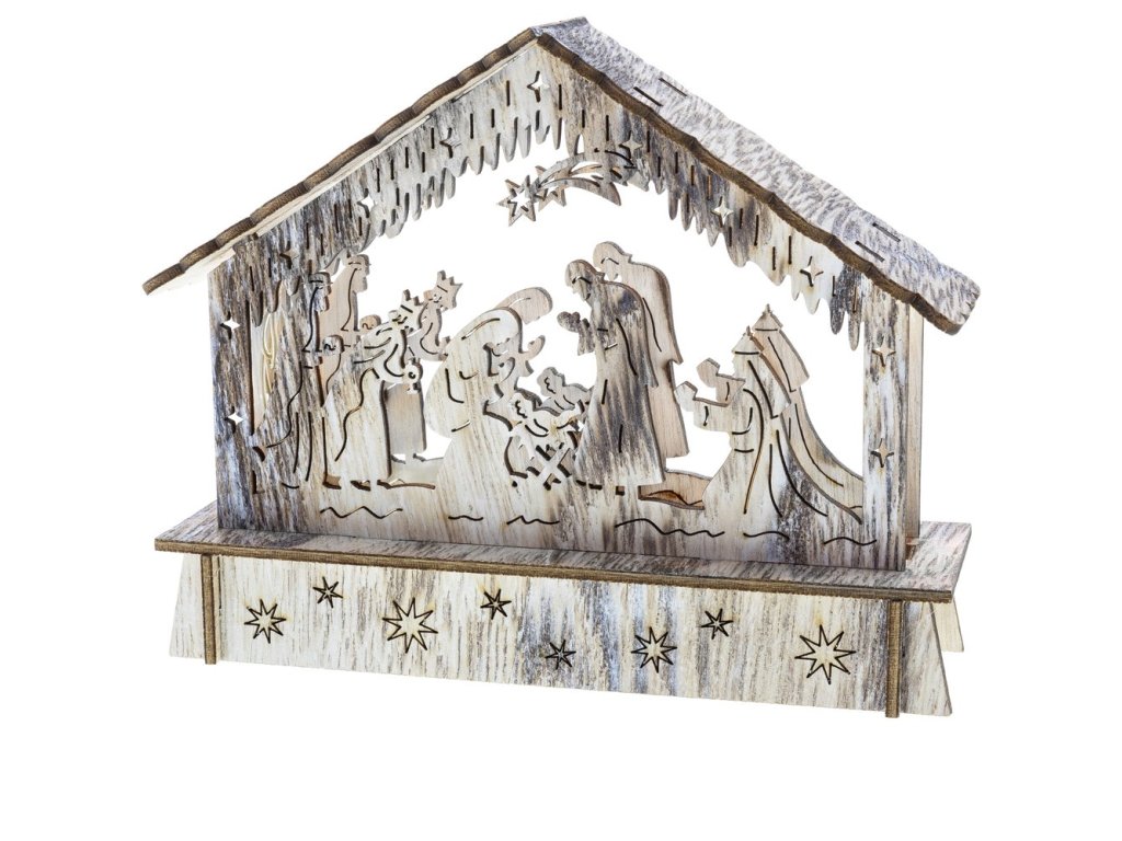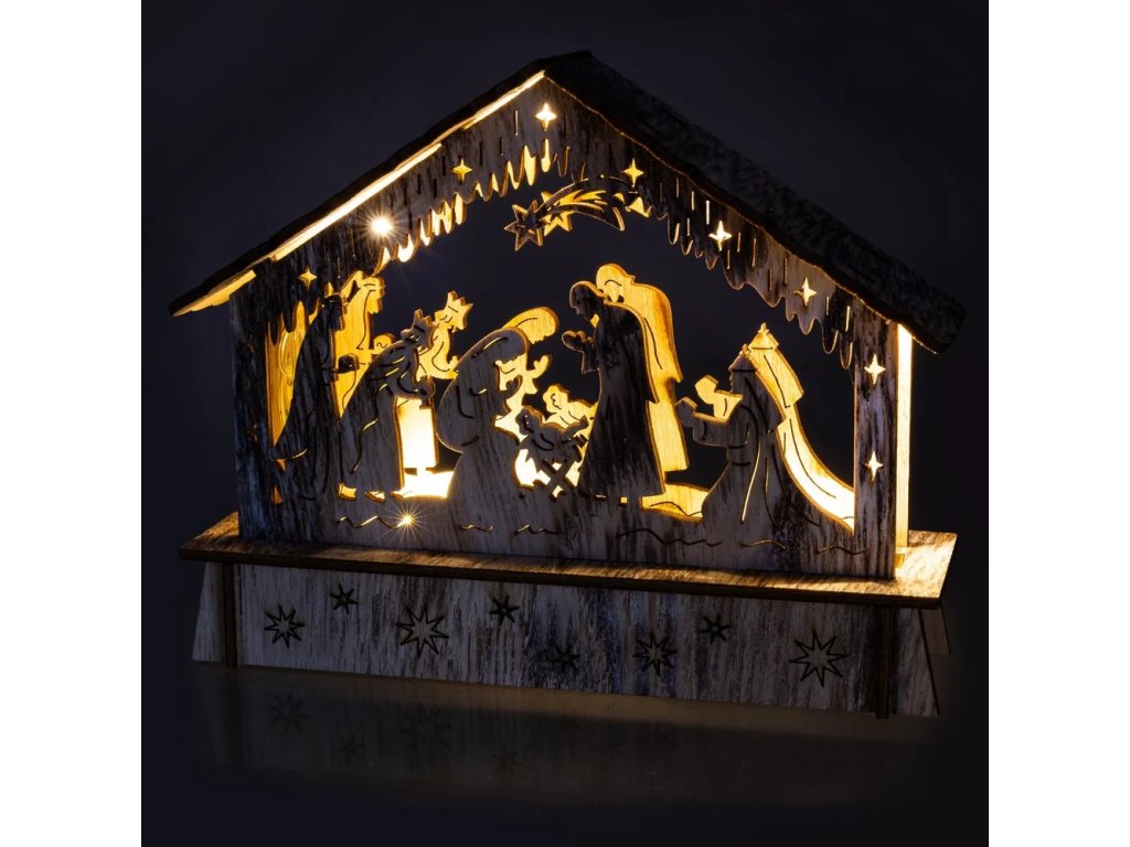 LED dekorace • teplá bílá barva světla • na baterie • odolnost IP20 • design betlému • 6 LED žárovek