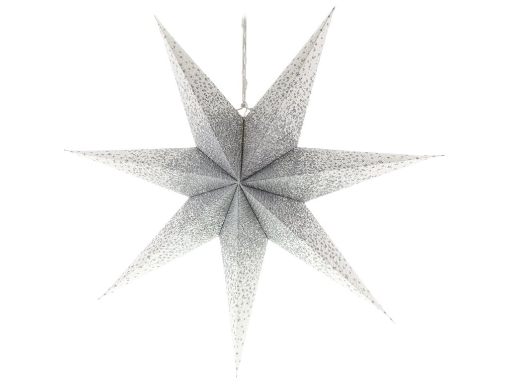 vánoční dekorace • papírová hvězda se strukturovaným povrchem • materiál: papír a bavlna • použití v interiéru • 10× LED • teplá bílá barva • časovač 6/18 hod • napájení 3× AA baterie (nejsou součástí balení) • průměr 60 cm